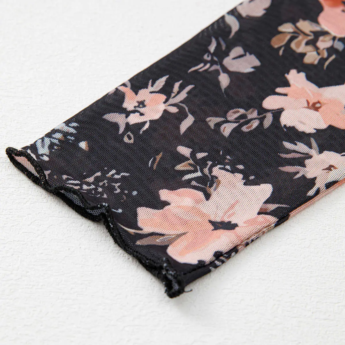 Floral Mesh Long Sleeve Top