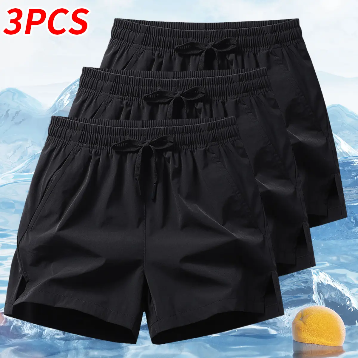 Men's 3 Pack Casual Summer Quick Dry Beach Shorts with Zipper Pockets, Drawstring Waist & Split Hem, Lightweight Breathable Comfy Shorts for Daily Wear, Running and Outdoor Activities