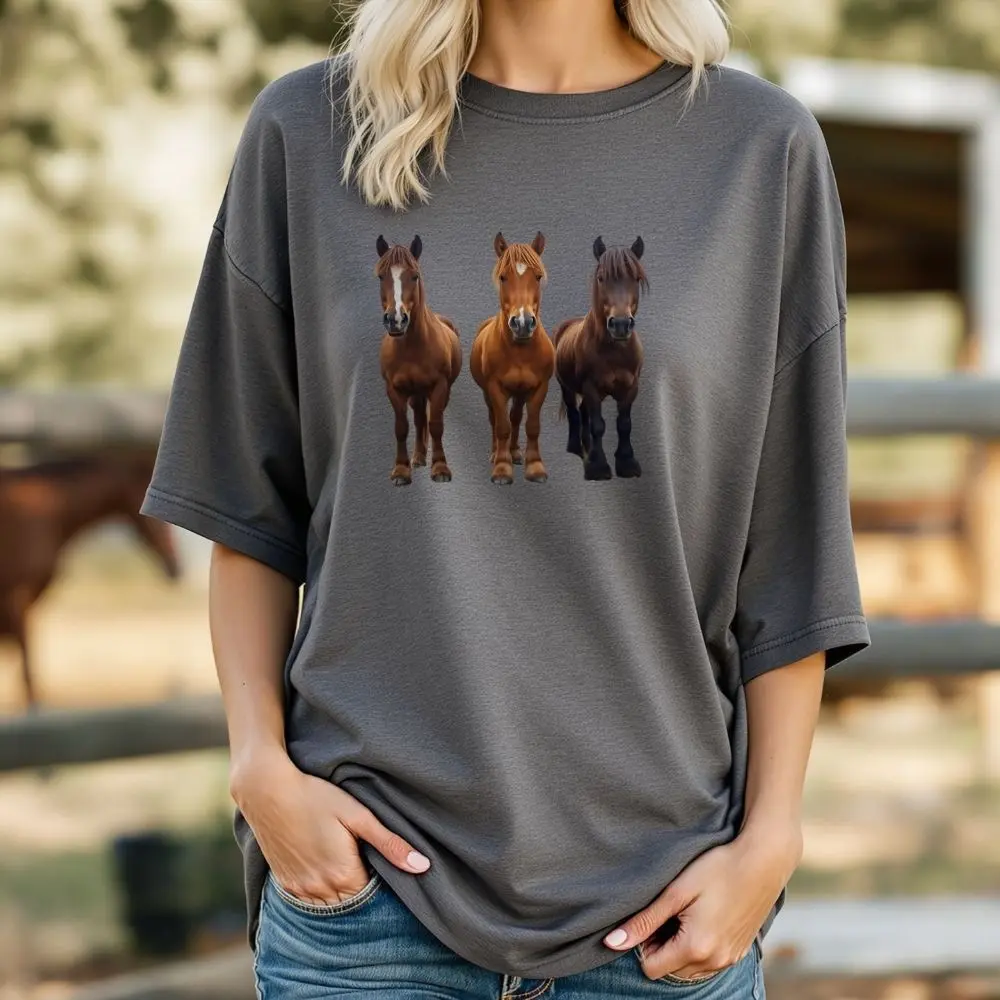 Show off your love for small equines with this Miniature Pony T-Shirt 3 Standing Mini Ponies, a charming equestrian graphic tee designed to stand out. This cute horse lover gift short sleeve western pony shirt combines comfort and playful style, making it perfect for everyday wear or gifting.