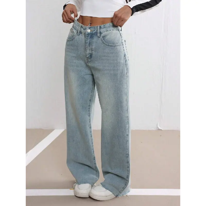Frayed Seam Washed Low Rise Straight Leg Jeans