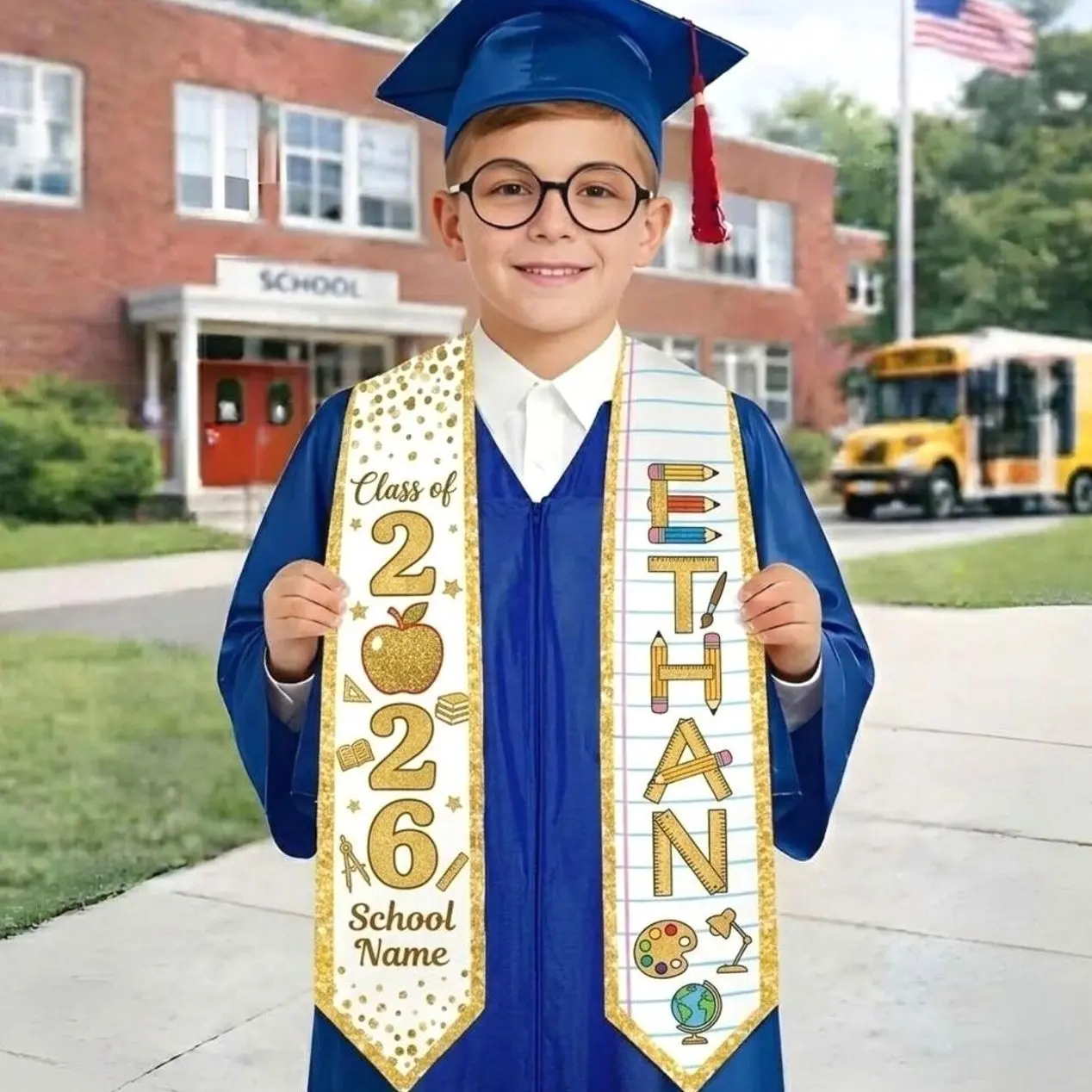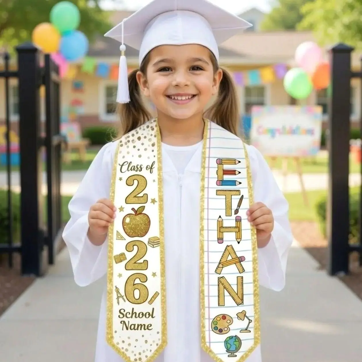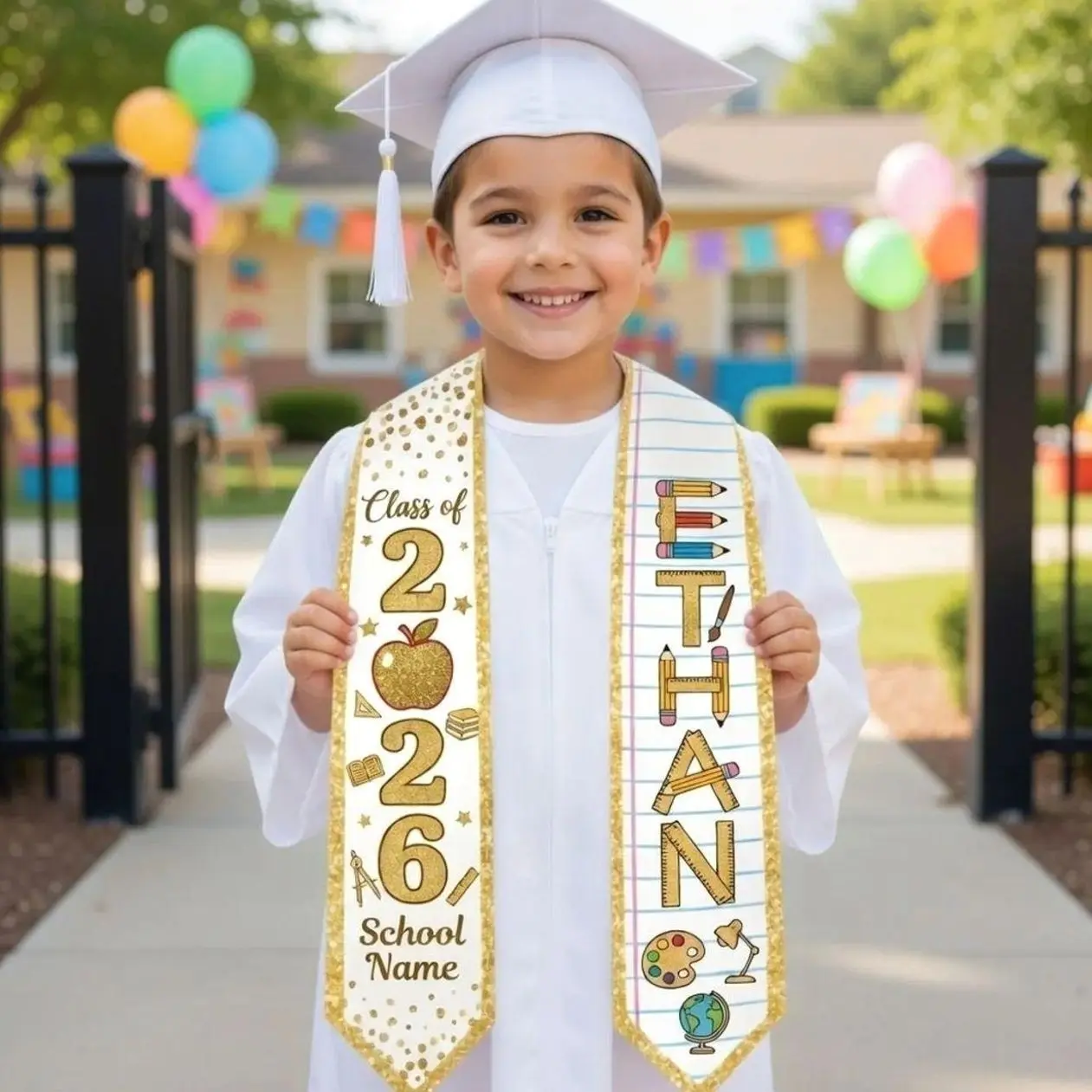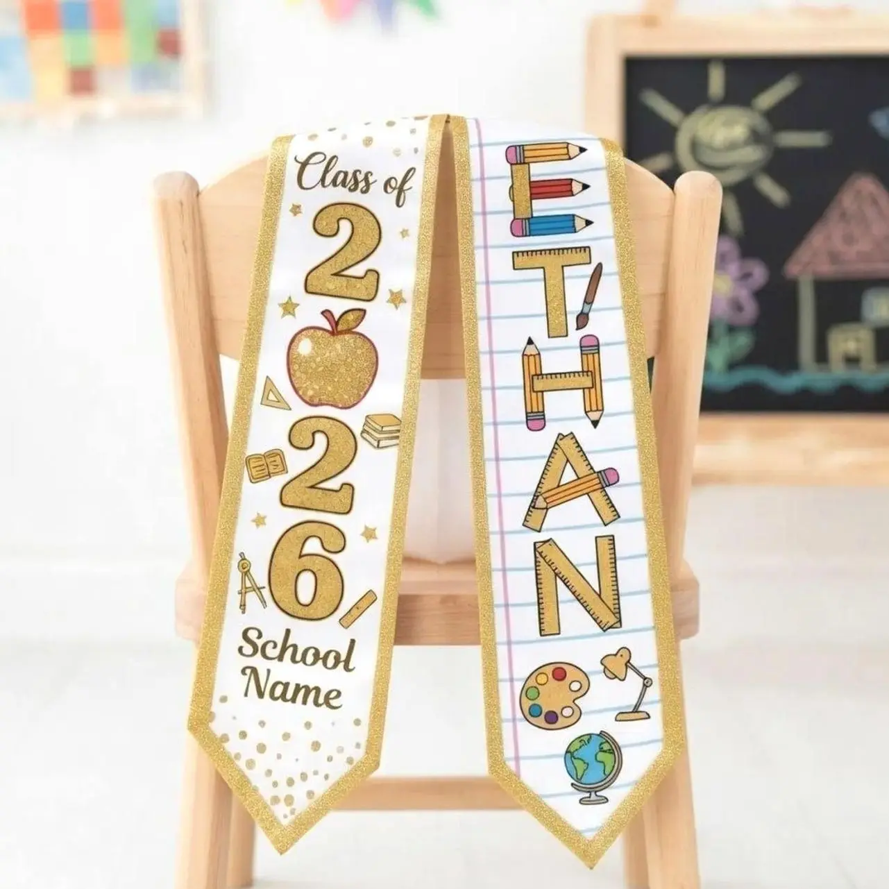 Personalized Kindergarten Graduation Stole Class of 2026, Custom Kids Graduation Sash, Preschool Grad Gift, School Theme Stole for Kids
