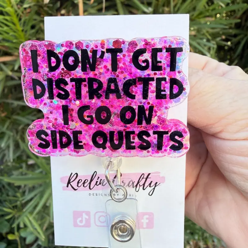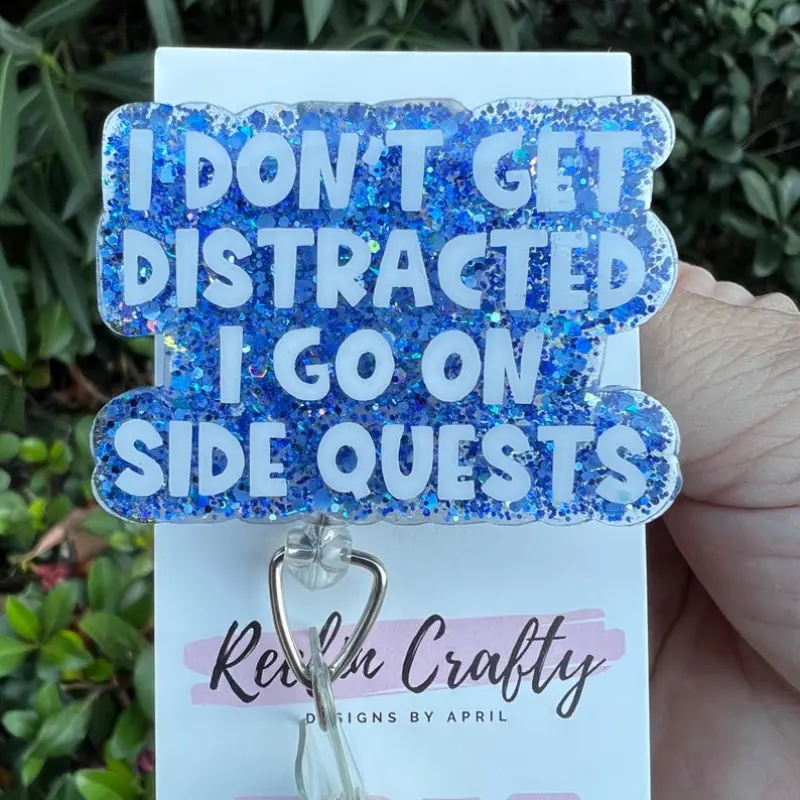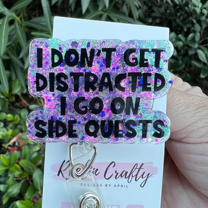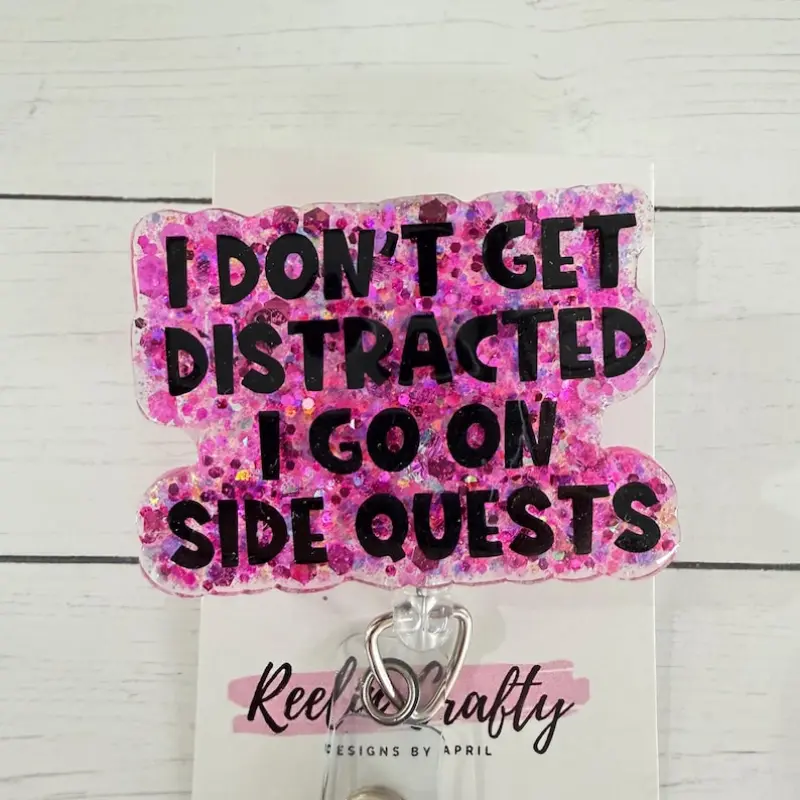 I Don’t Get Distracted Funny Nurse Badge Reel, Sarcastic badge holder for keys, Sassy ID Holder, Healthcare Worker Gift, Cute Health Badge