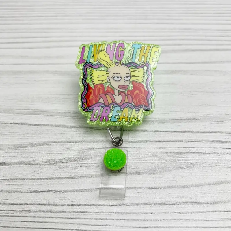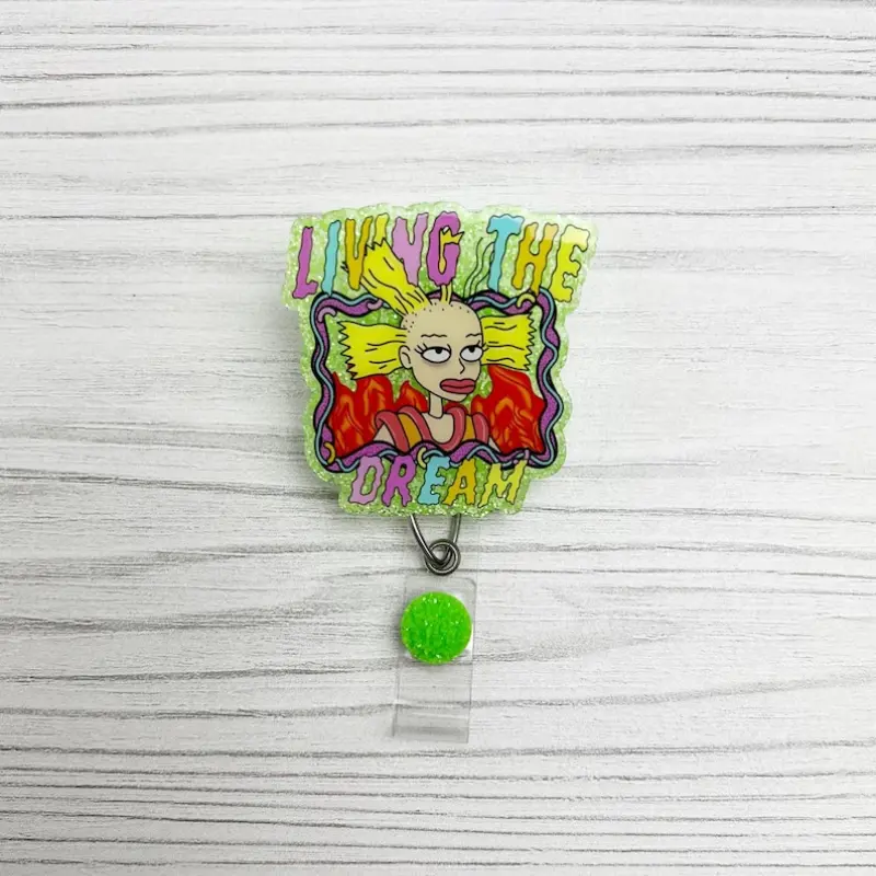 Living The Dream Badge Reel | Funny Badge Reel | Cute Badge Reel | RN CNA Gift | Glitter Badge Holder | Sarcastic Badge Reel | Snarky
