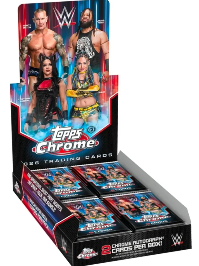 ·Topps Chrome is one of the most iconic chromium trading card brands in The Hobby. Renowned for its vibrant refractors, expansive rainbow chases, and premium autograph content, Topps Chrome has helped define modern collecting across multiple sports. This release marks year two of Chrome WWE’s return to Topps. Chrome WWE delivers on-card autographs, exciting new chase inserts, and commemorative content honoring milestone anniversaries of legendary WWE Superstars.