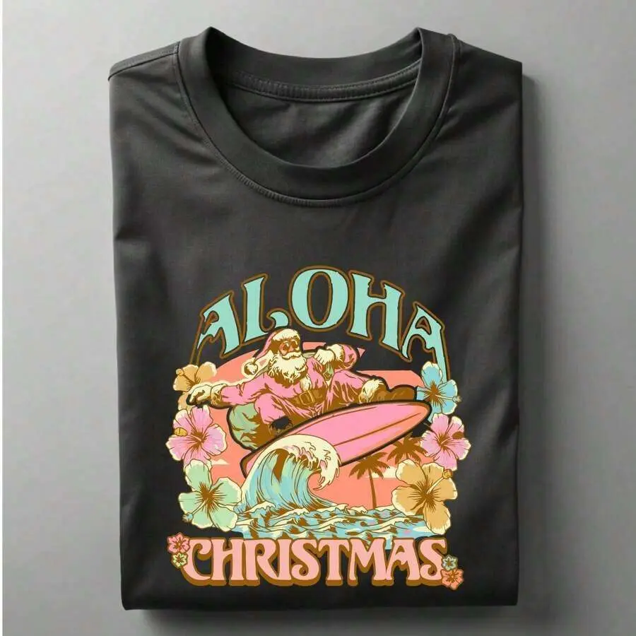 Ciel Fashion Aloha Christmas Shirt, Tropical Hawaiian Christmas T-Shirt, Matching Christmas Hawaii Family Trip Tee, Funny Xmas Party Tee, Winter Holiday Shirt.UA-7712025