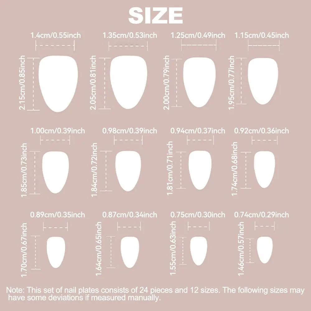 Beautiful fit true to size and stick on really well Definitely would buy again I love having false nails instead of having to go to the salon