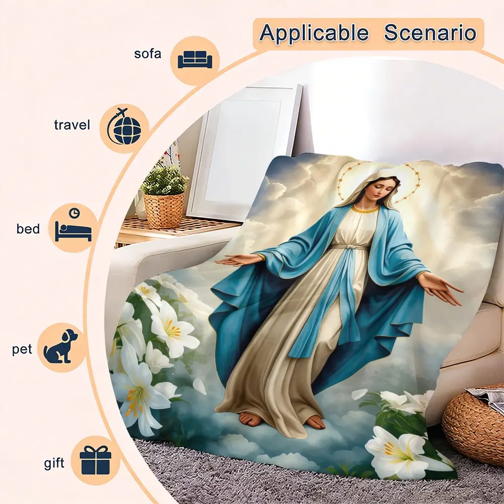 Virgin Mary Blanket Wrap Yourself in Divine Comfort Soft Funny Throw Blanket Cozy Lightweight Plush Portable Cover Blanket For Sofa,Warm Gift For Birthday,Christmas,Multiple Blanket