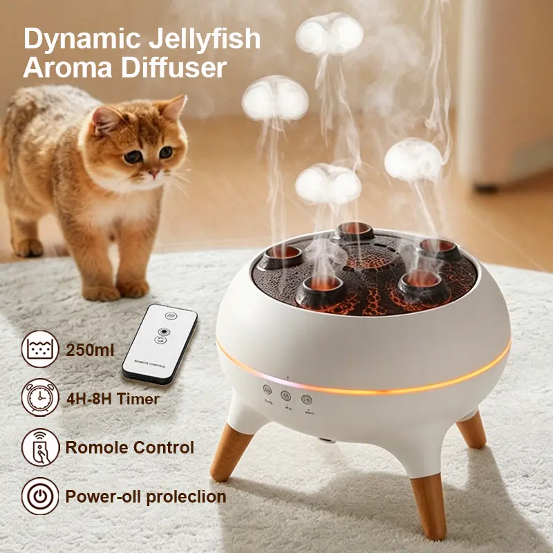 Dynamic Jellyfish Aroma Diffuser with Sound-Reactive Mist Multi-Color Light-Changing Remote Control & Smart Timer 250ml Home Ambient Scent Humidifier