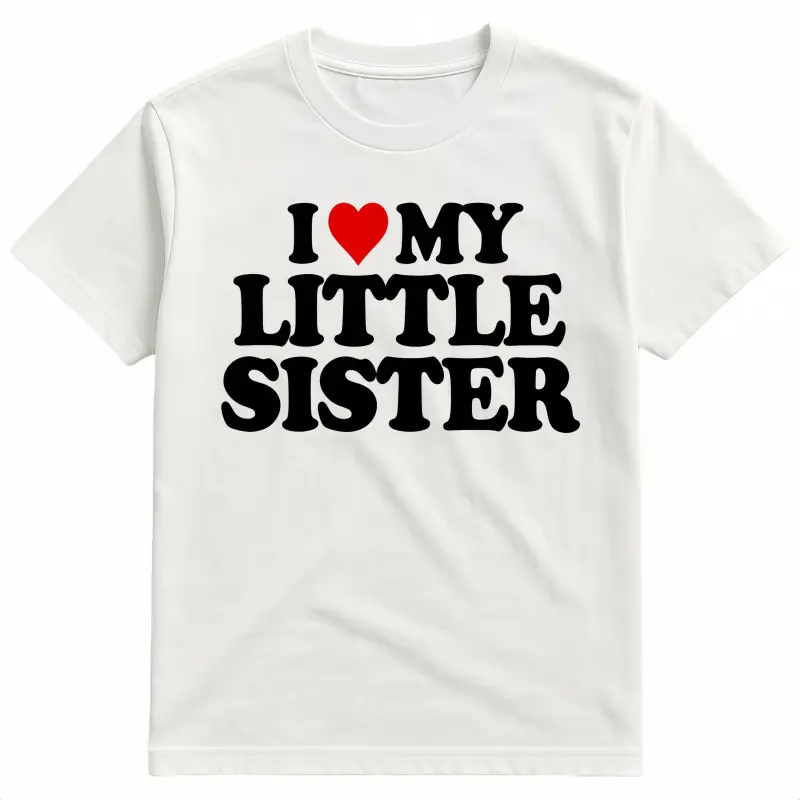 ✨Made in the USA.I love my little sister.Heart-shaped fun gift.Unisex T-shirt.This black cotton crew neck T-shirt is perfect for holidays like Christmas.Available in sizes S-5XL, it's a versatile choice for everyone