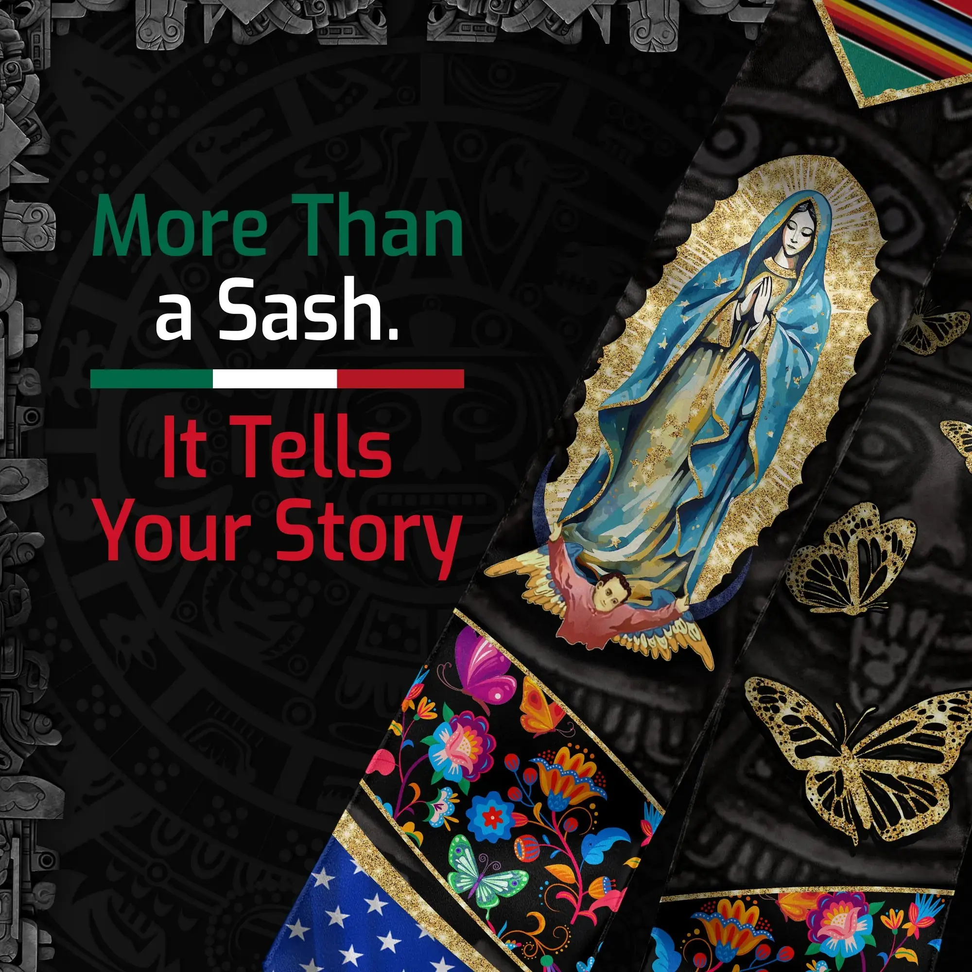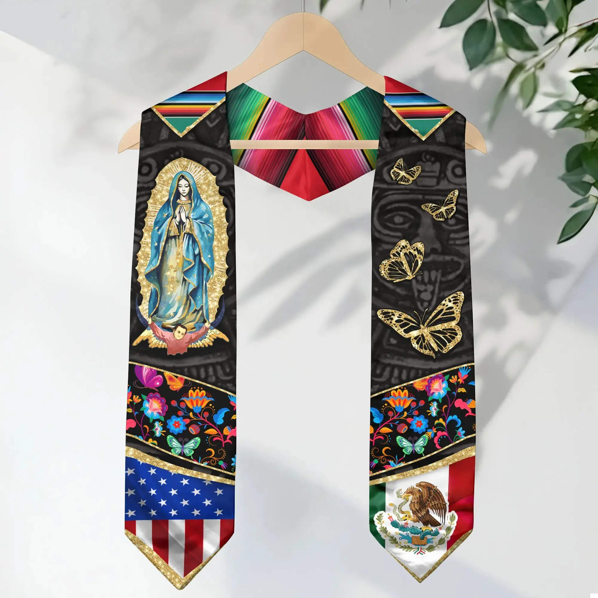Mexican Graduation Stole 2026 – Mexico American Flag Graduation Sash, Class of 2026 V Shape National Country Flag Stole