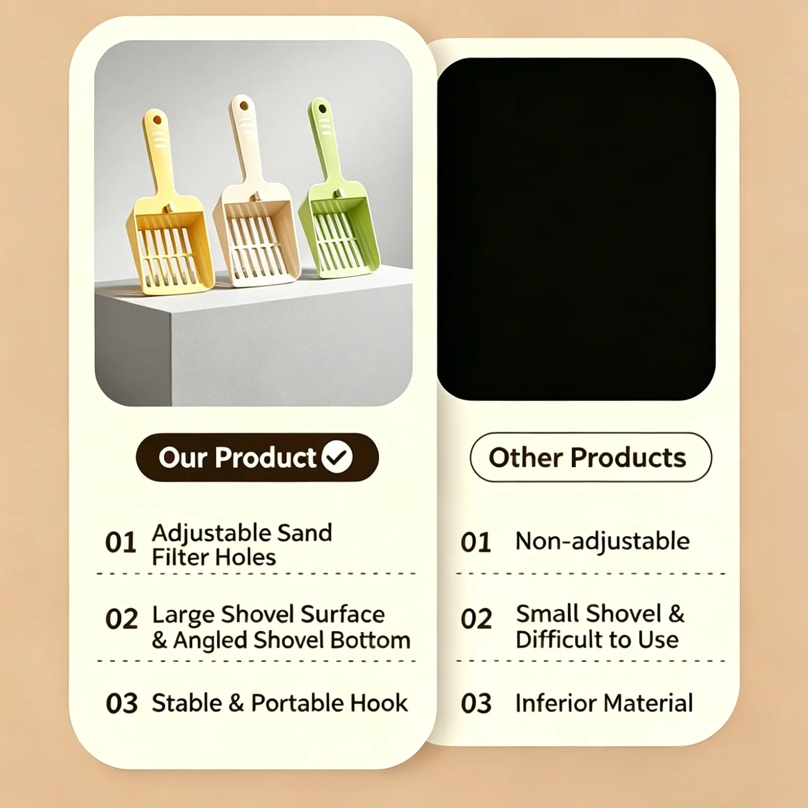 This cat litter scoop features optional 3mm and 7mm sifting holes for you to choose based on your needs, enabling ultra-fast litter sifting with zero residue left behind, effectively keeping your cat litter box clean and hygienic at all times