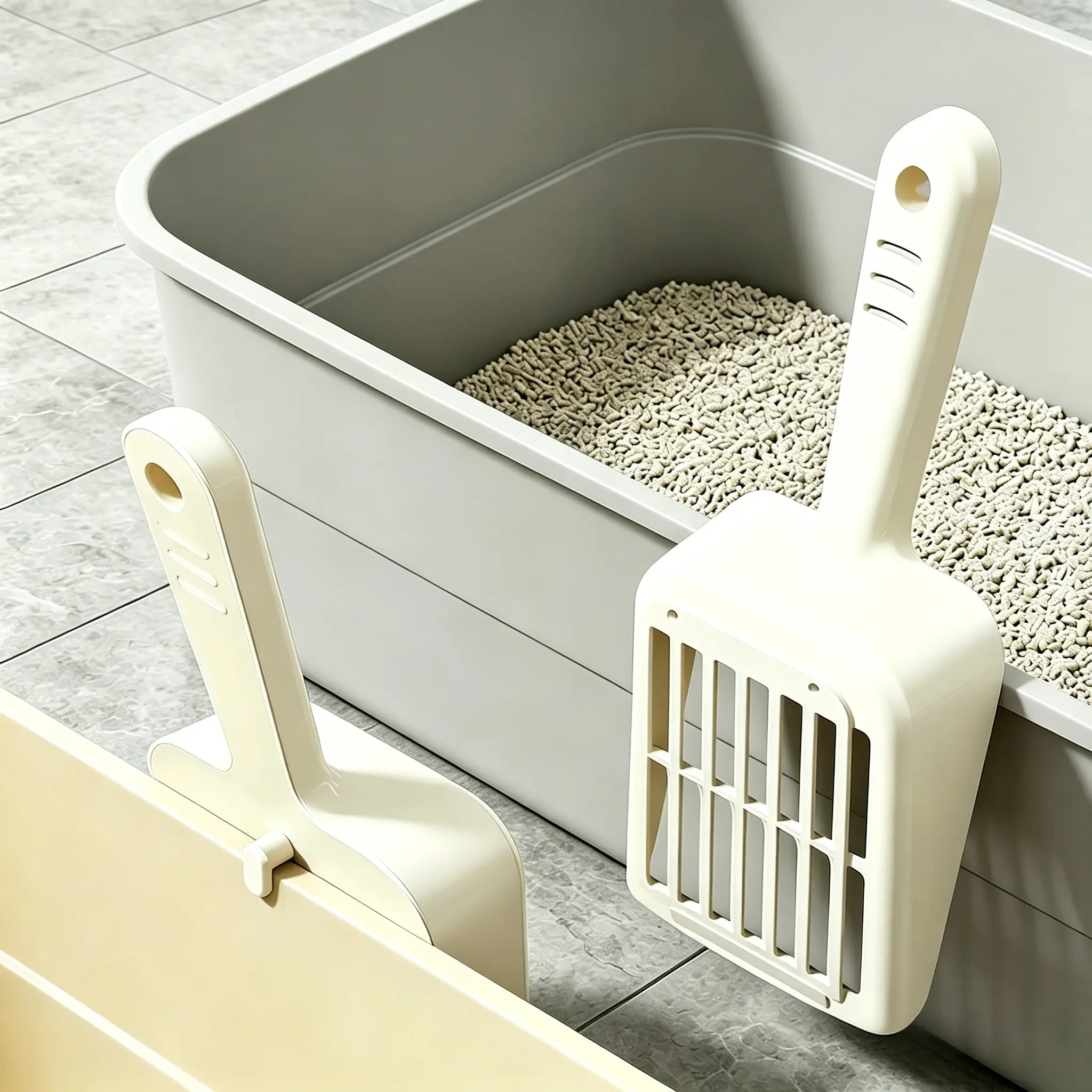 The scoop features an innovative dual-function design that acts as both a control button and a hanging hook for effortless storage. After use, you can simply hang it right next to your cat litter box, ensuring easy access for your next cleaning.
