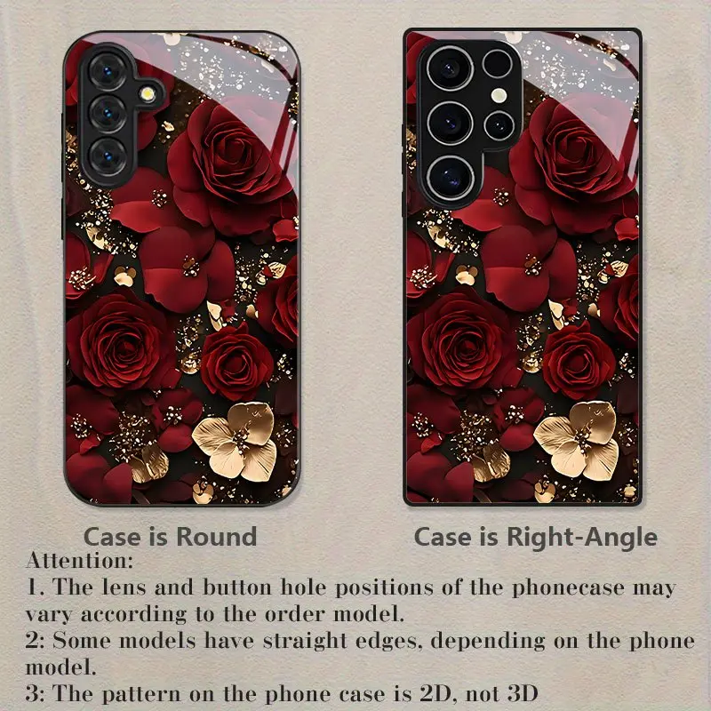 Stylish Tempered Glass Protective Case with a Rose Flower Design for Various for Samsung Galaxy S26 S25 S24 S23 S22Pro S21 S20 Fe Plus Ultra Pro A56 A55 A54 A53 A52 A51 A36 A35 A34 A32 A26 A25 A24 A23 A16 A15 A14 A06 A05 A03s, Offering Anti-Drop Features