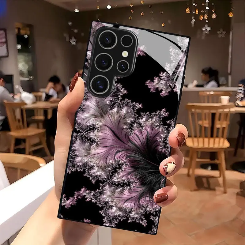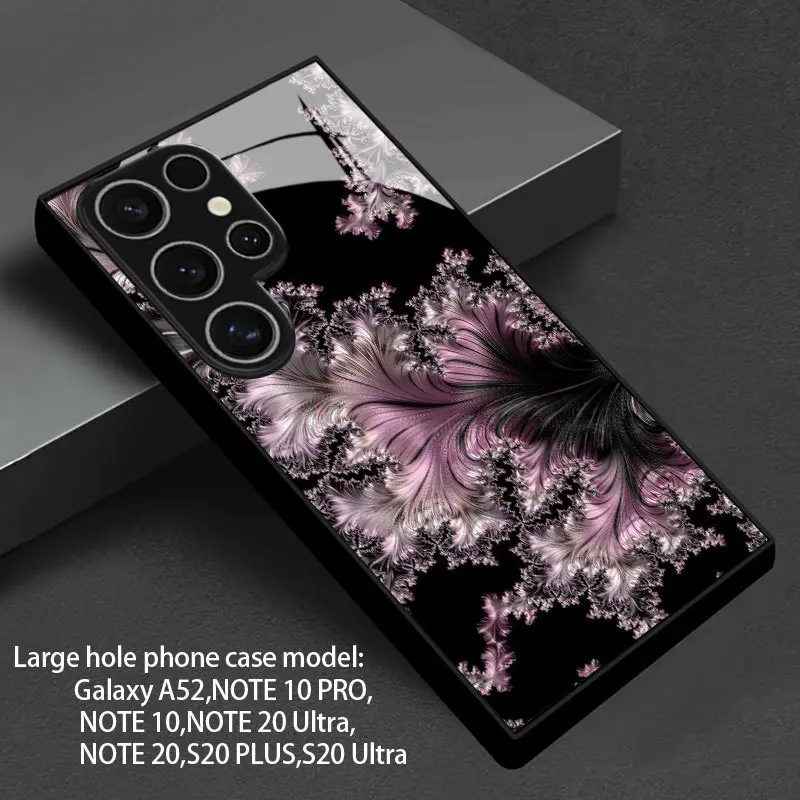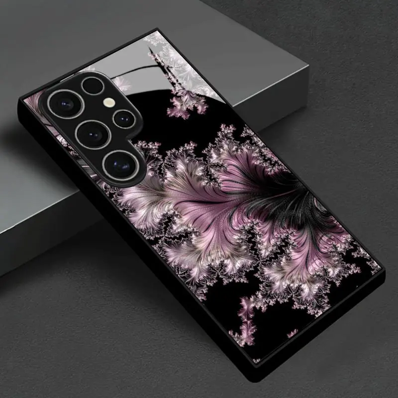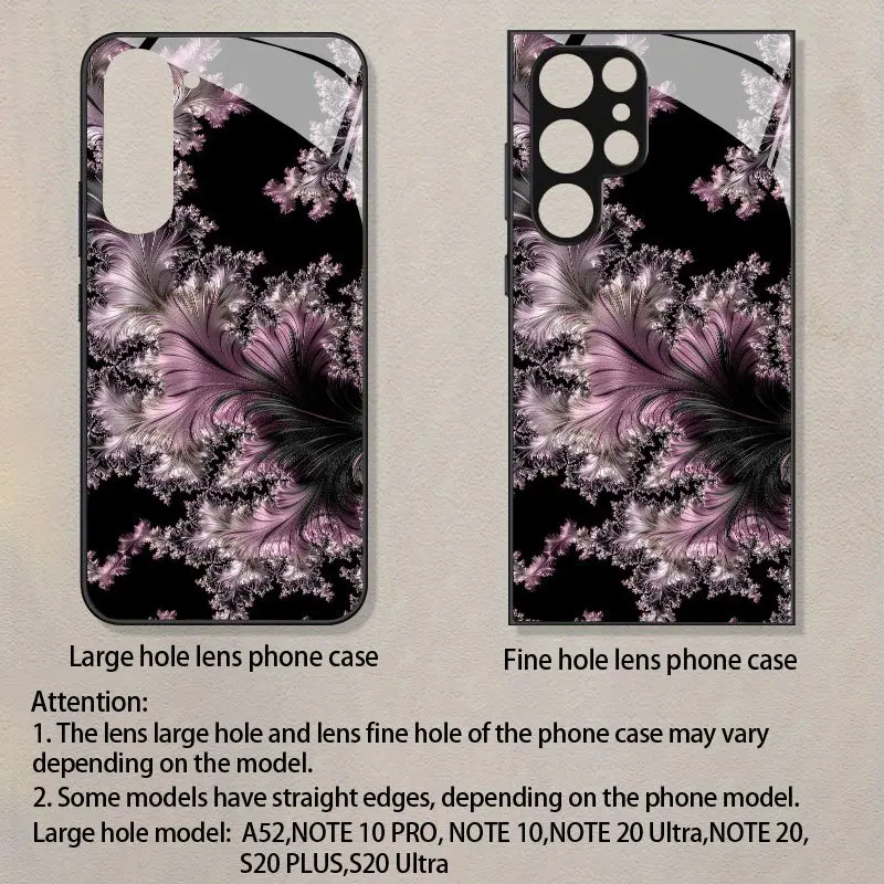 Pink Feather-like Texture Pattern Design Tempered Glass Phone Case, Suitable for Samsung Galaxy S26 S25 S24 S23 S22Pro S21 S20 Fe Plus Ultra Pro A56 A55 A54 A53 A52 A51 A36 A35 A34 A32 A26 A25 A24 A23 A16 A15 A14 A06 A05 A03s