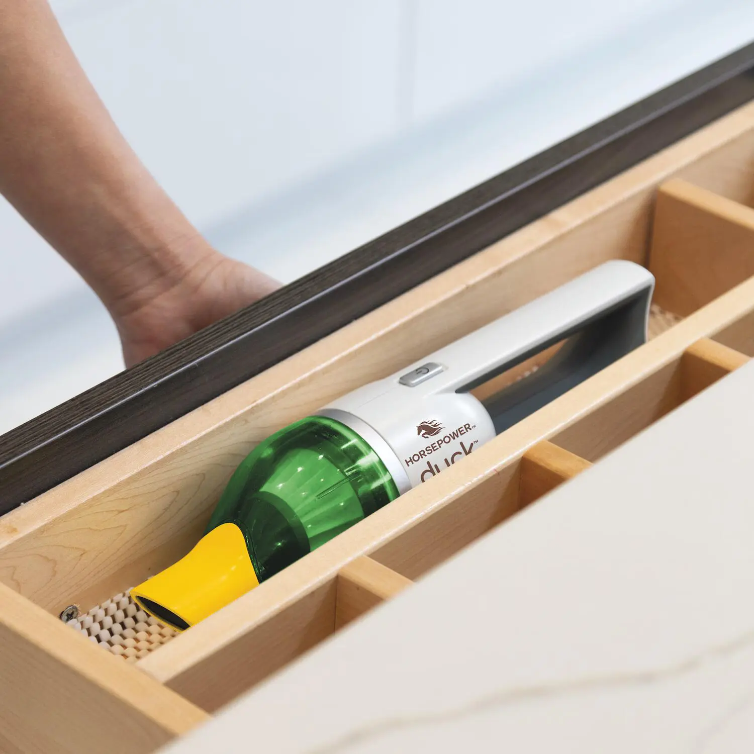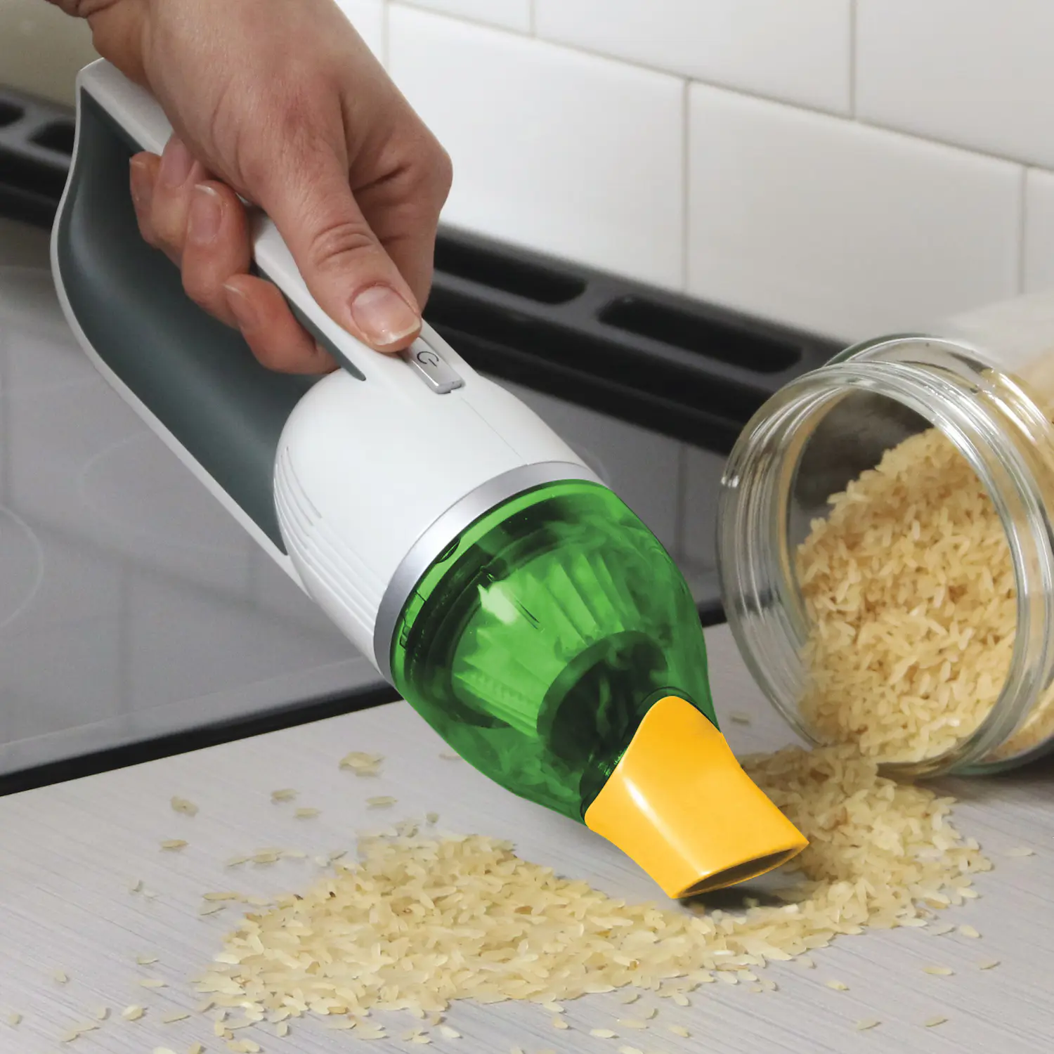Cordless, compact, power vacuum with 3 bonus attachments (crevice tool, brush tool, hose). Turbo charged motor with premium HEPA filter and the latest rechargeable technology. Perfect for kitchens, pet hair, and the car. 12" l x 3" diam..