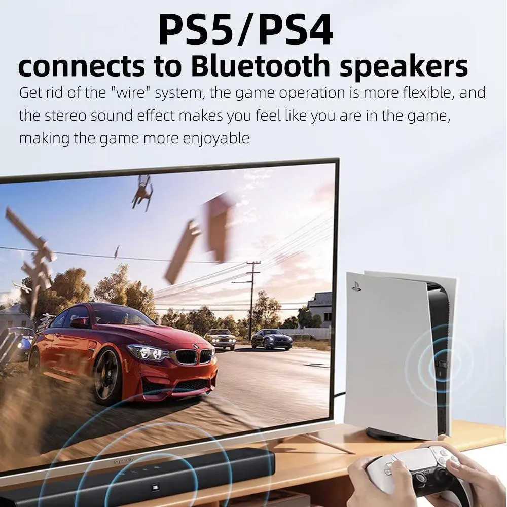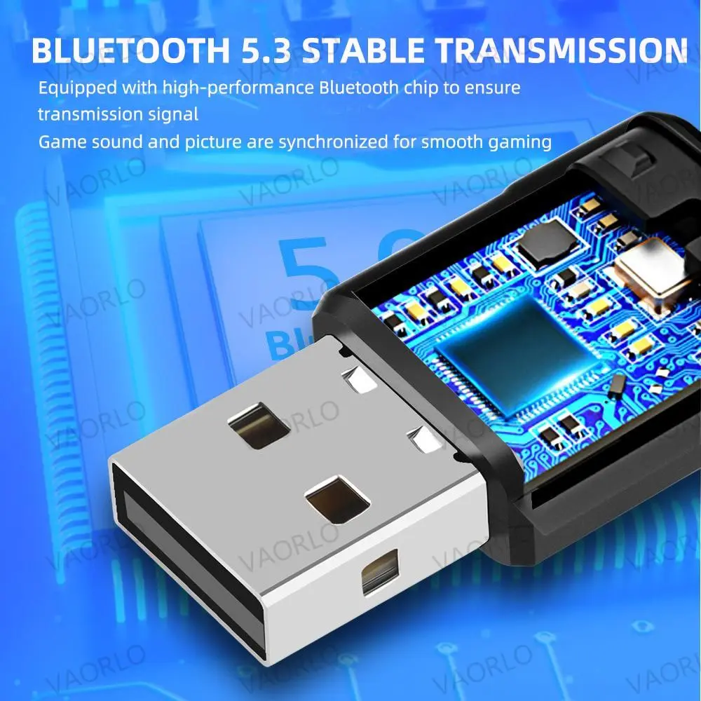 1. Using ATS2831 chip, it truly complies with Bluetooth compatible 5.3 technical specifications and audio transmission. 2. Longer transmission distance: 10-20m ultra-long transmission distance (barrier-free), strong signal. 3. More stable transmission rate: 3Mbps transmission rate, providing high-speed audio data transmission. 4. Ultra-low latency and high-speed link, intelligent sleep wake-up, energy saving, adaptive frequency hopping to reduce crosstalk. 5. Backward compatible with Bluetooth 2.0, Bluetooth 2.1, Bluetooth 3.0, Bluetooth 4.0, Bluetooth 4.2, Bluetooth 5.0, Bluetooth 5.1, Bluetooth 5.2 specifications. 6. Driver-free design, more convenient to use 7. Compatible with computers (Windows 7/8/8.1/10/11), PS4/PS5/Switch game consoles and other devices to connect Bluetooth headsets and Bluetooth speakers. 8. Dual audio streams Up to 2 pairs of headphones can be connected at the same time to listen to game audio without disturbing others (only supports Bluetooth headphones)