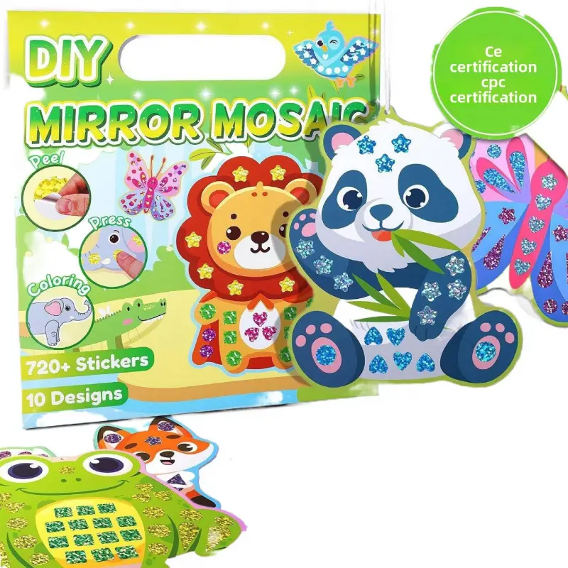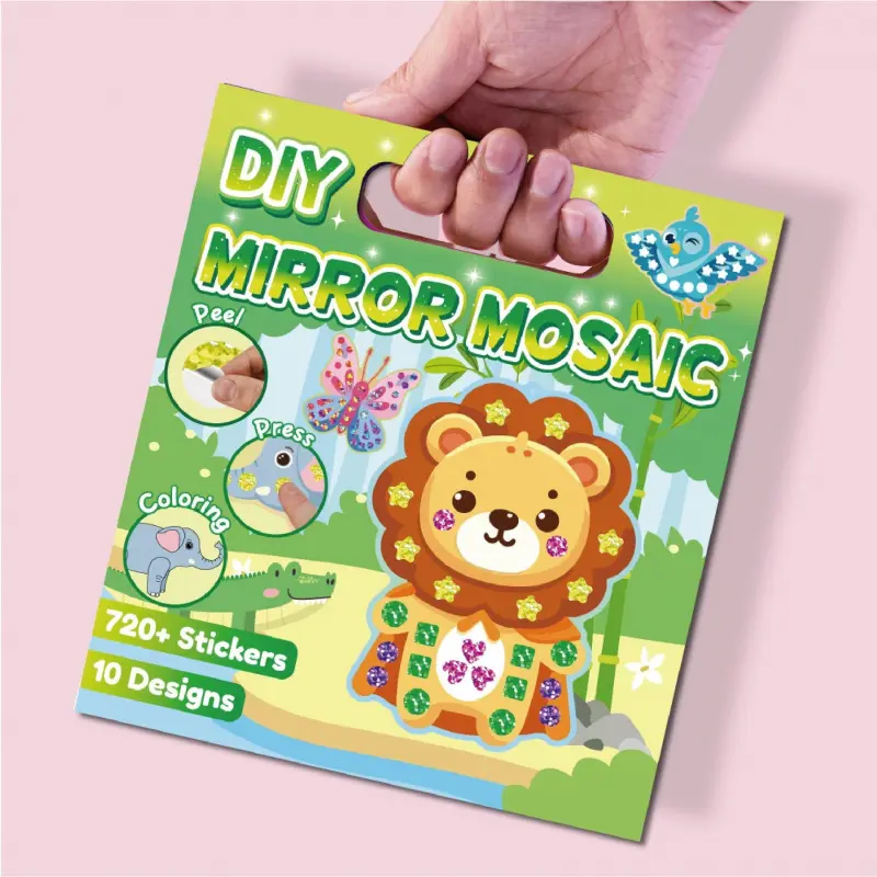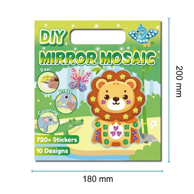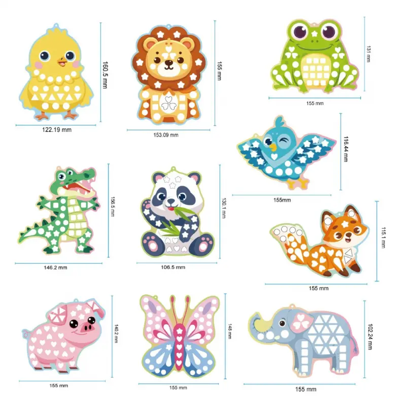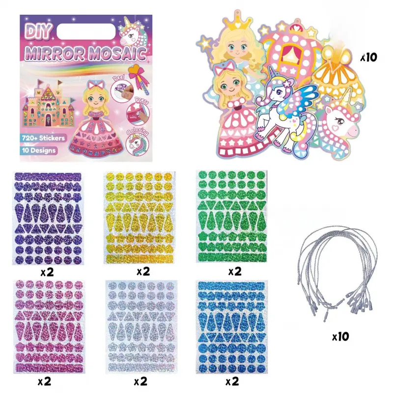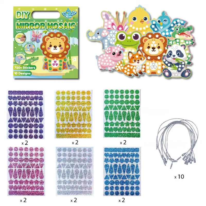 ✨3-in-1 Creative Play for Little Artists** - **Pre-Cut Mosaic Stickers**: 12 vibrant, shiny stickers (6 colors, 2 each) that peel and stick easily-perfect for tiny hands to master!- Colorable Cardboards**: 10 double-sided animal-themed cards (15cm x 10cm) with pre-drawn outlines.Let kids add their own flair by coloring the reverse side with markers, crayons, or watercolors!- **Hanging Fun**: 10 free hanging ropes-turn masterpieces into room decor!