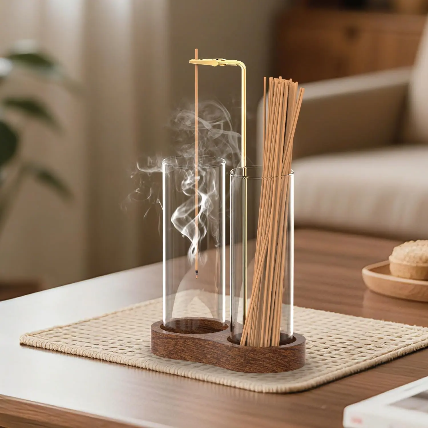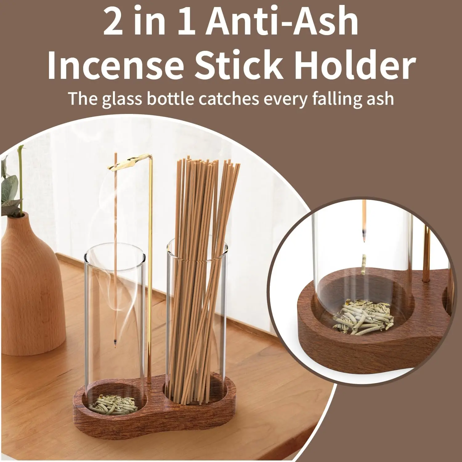 Dual Functionality: This incense holder features two 5.9-inch tall glass cups. One cup catches ash, protecting surfaces, while the other stores incense sticks for easy access. It keeps burning clean and convenient.