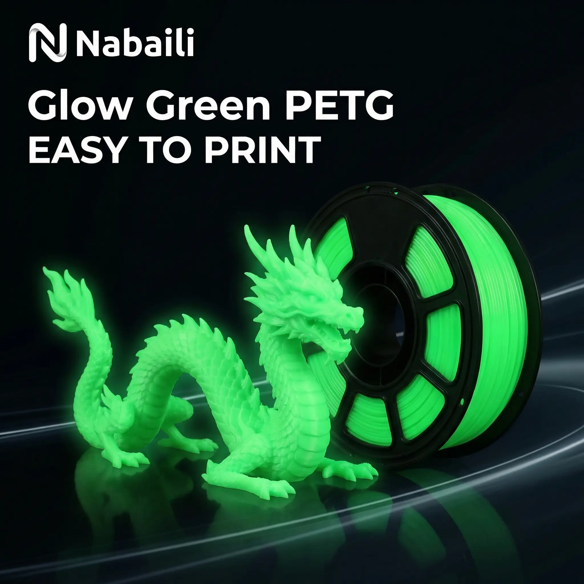 Nabaill 3D Filament PETG Glow-in-the-Dark Green Fast Print - PETG BASIC Settings for 3D Printing Projects