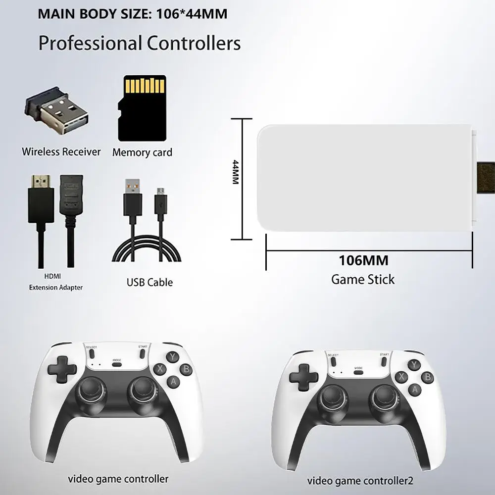 Dual Wireless Handle :The retro game stick comes with two wireless handles, allowing for easy and comfortable gameplay.