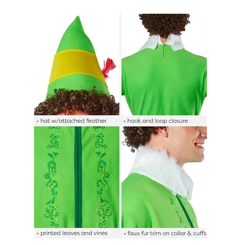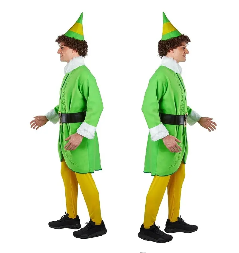 Buddy the Elf (played by Will Ferrell) was accidentally transported to the North Pole as a toddler and raised to adulthood among Santa's elves in the 2003 Christmas movie, Elf. Unable to shake the feeling that he doesn't fit in, the adult Buddy travels to New York, in full elf uniform, in search of his real father. This officially licensed Buddy the Elf Ultra Deluxe costume includes the iconic jacket, hat, wig, tights and belt. Buddy is perfect for Christmas, other elves, Halloween, cosplay, theatrical productions, theme parties and more. Other Buddy, elf and Christmas costumes and accessories (Santa costumes and accessories, elf shoes, other hats, ears, Jovie costumes, theatrical makeup, suspenders, gloves...) are available on our page - subject to availability.