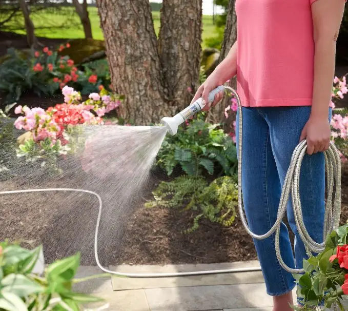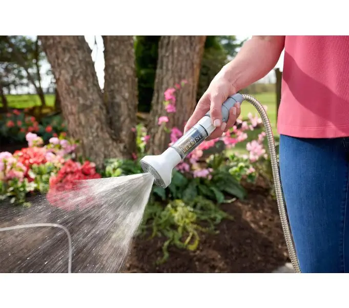 The easy-coiling companion serves you season after season thanks to a durable yet lightweight design that combines 304-grade stainless steel with the flexibility of a fabric hose. It's compact when coiled for storage and effortlessly expands when in use, smoothly snaking around your yard, refusing to get tangled along the way.