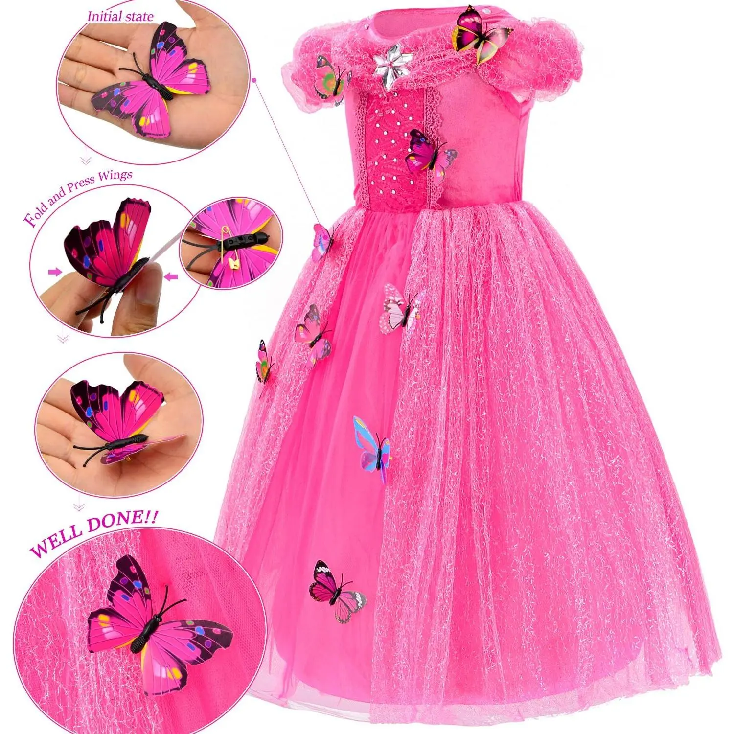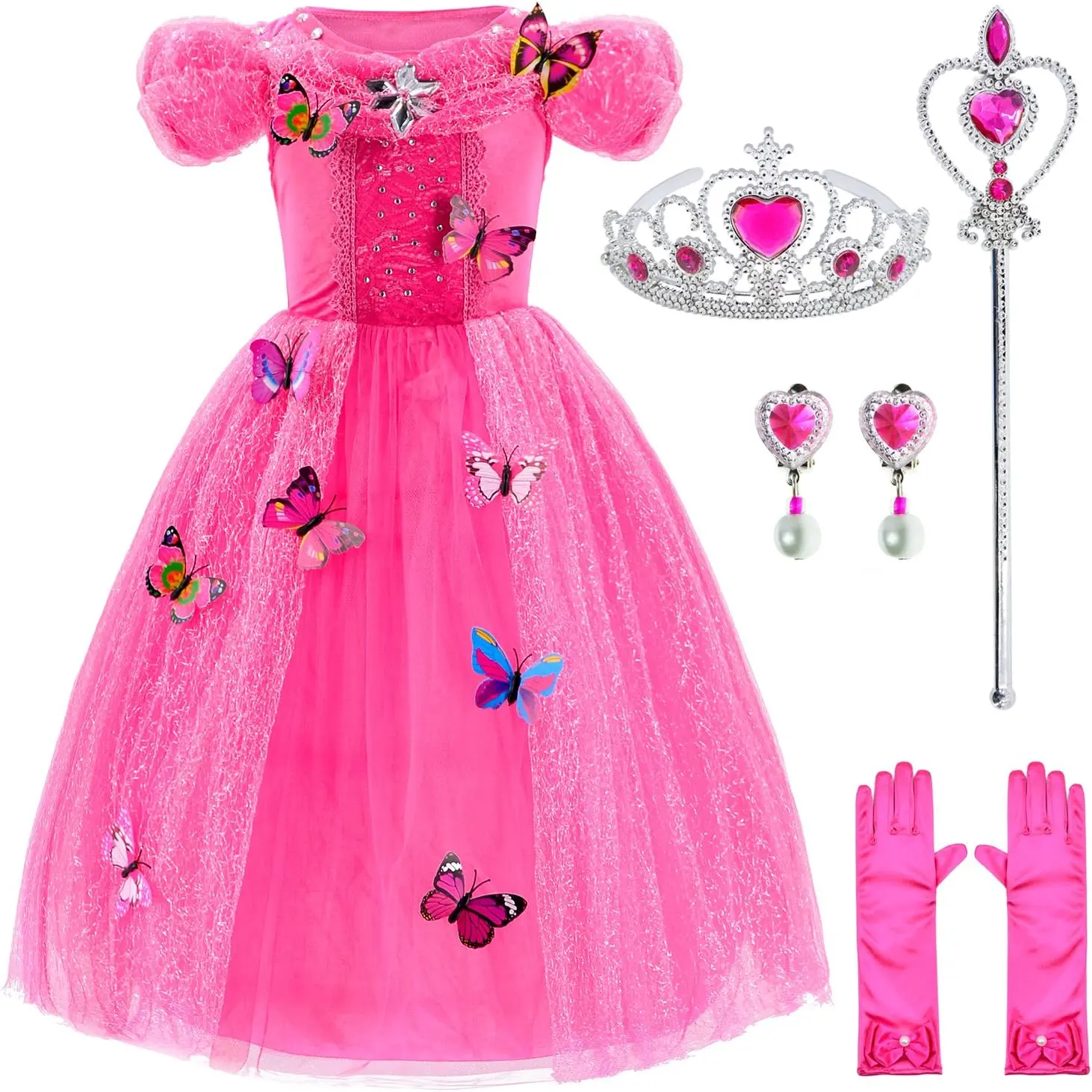 Includes dress,gloves,tiara and wand,butterflys.