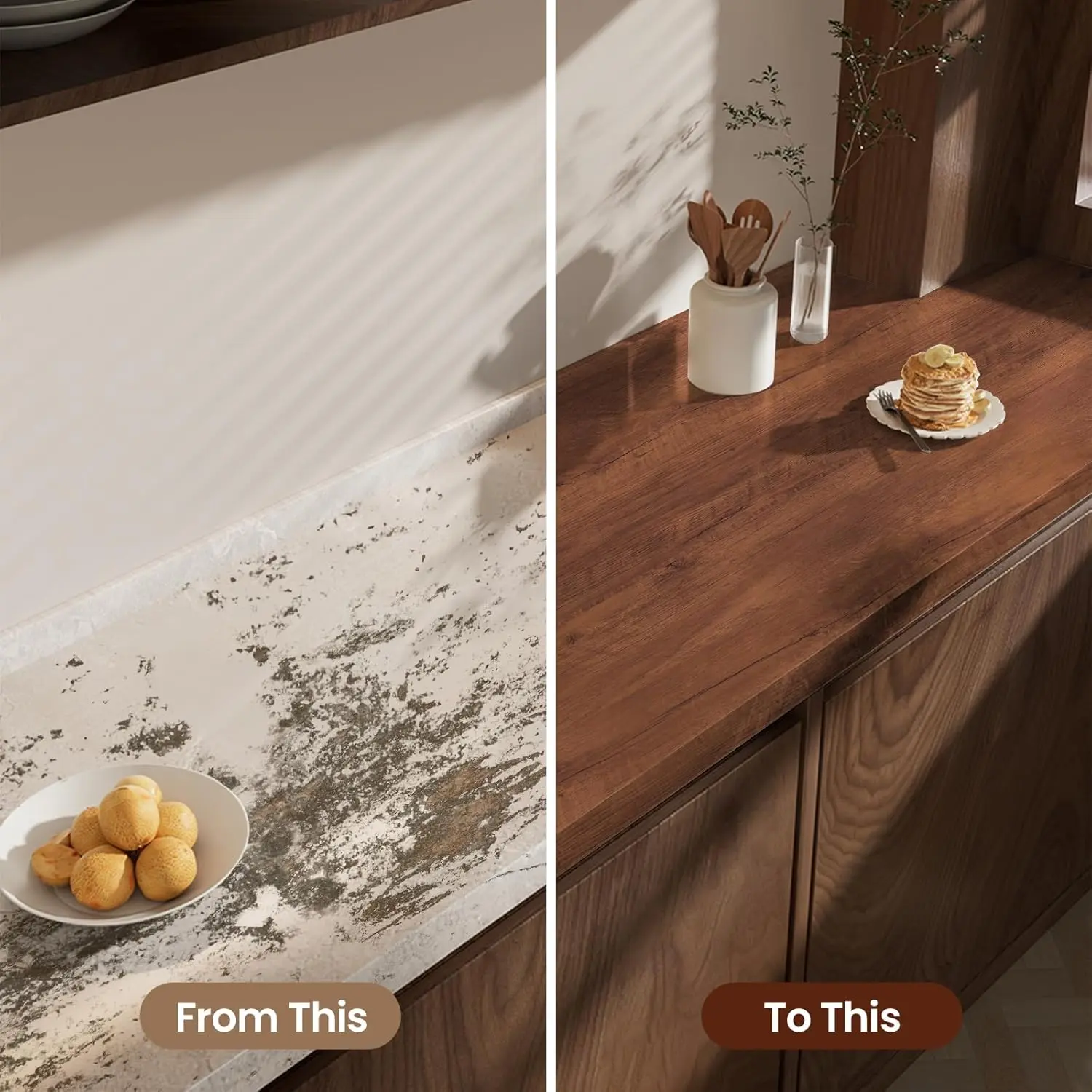·[Realistic Textures] The wood contact paper features distinct shade variations among different textures, giving the wood grain an incredibly lifelike appearance. Moreover, it comes in a predominantly reddish - brown color, which is highly trendy in the current market. This makes it a seamless fit for furniture of various styles, whether it's modern, traditional, or rustic