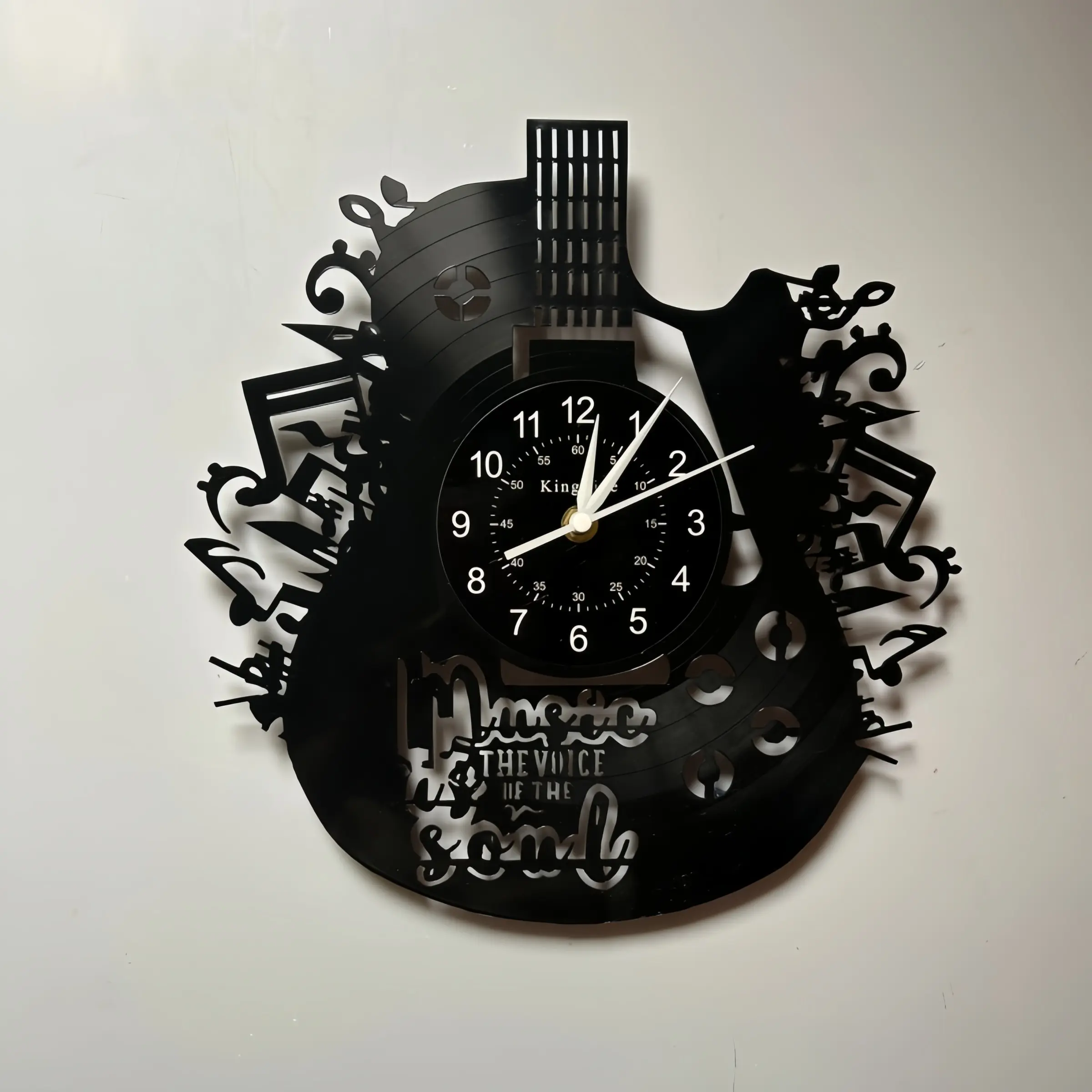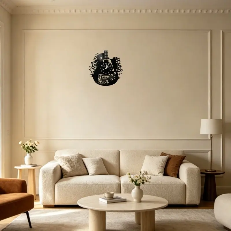 【Unique Shape】: Features a guitar-shaped vinyl wall clock, adding a distinctive touch to any room.