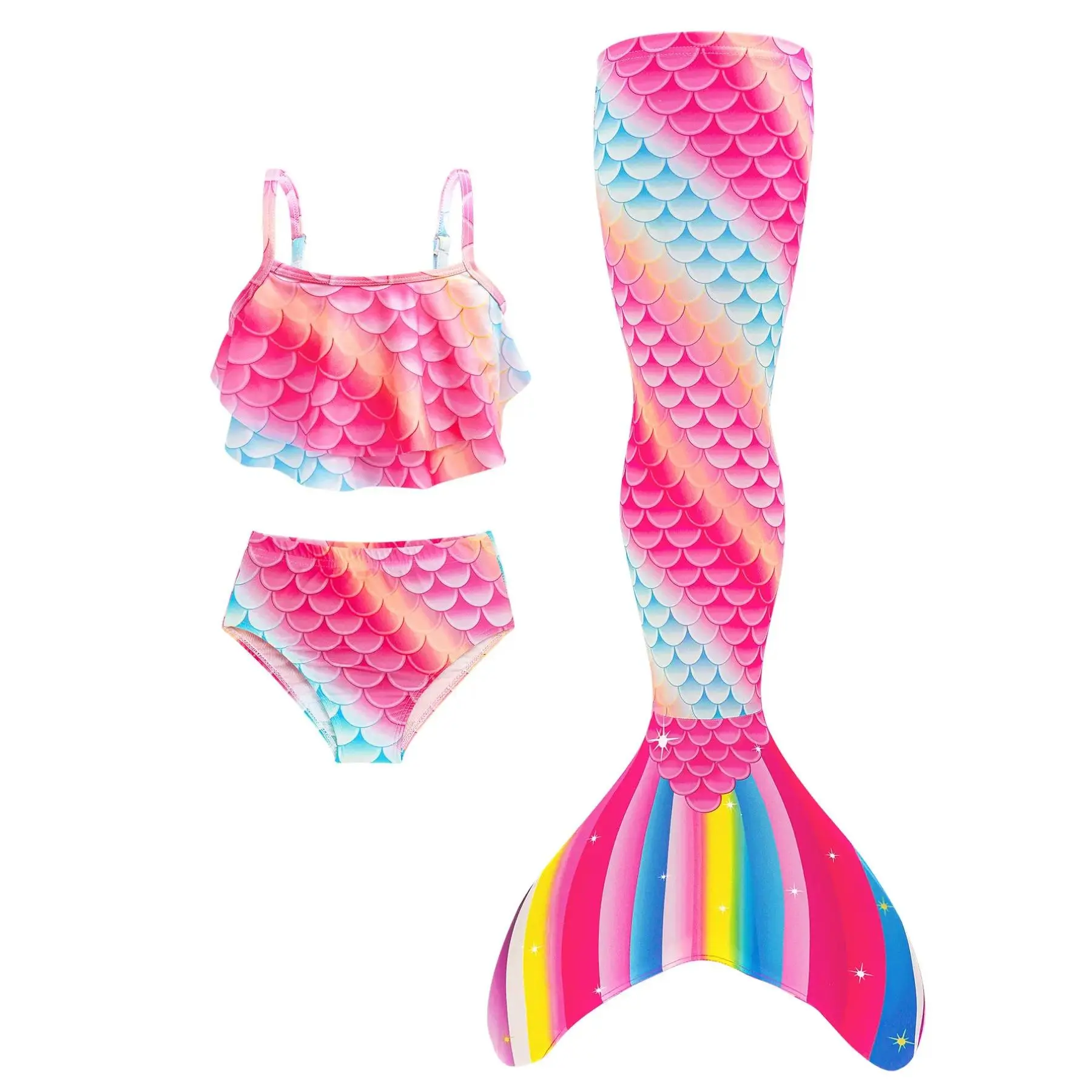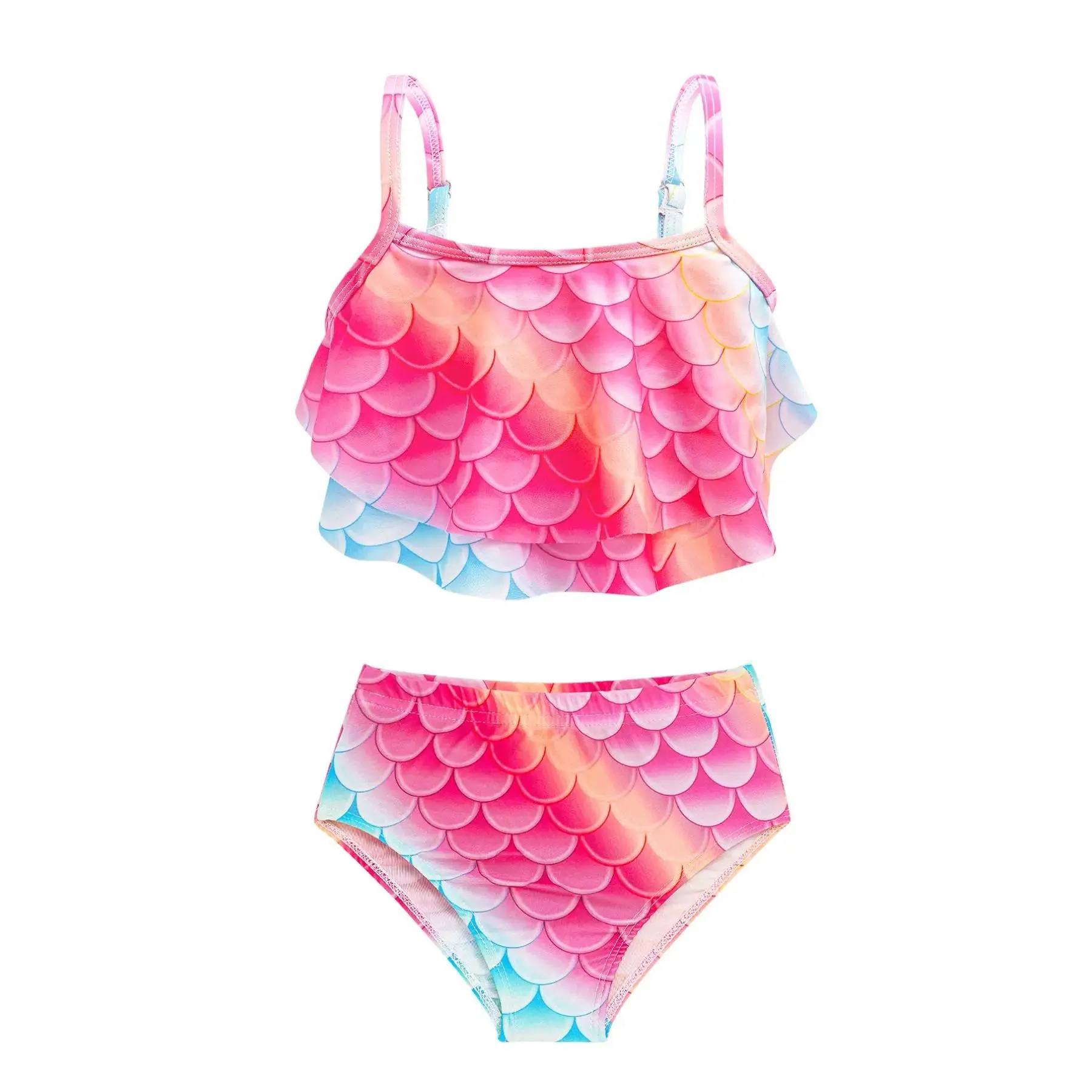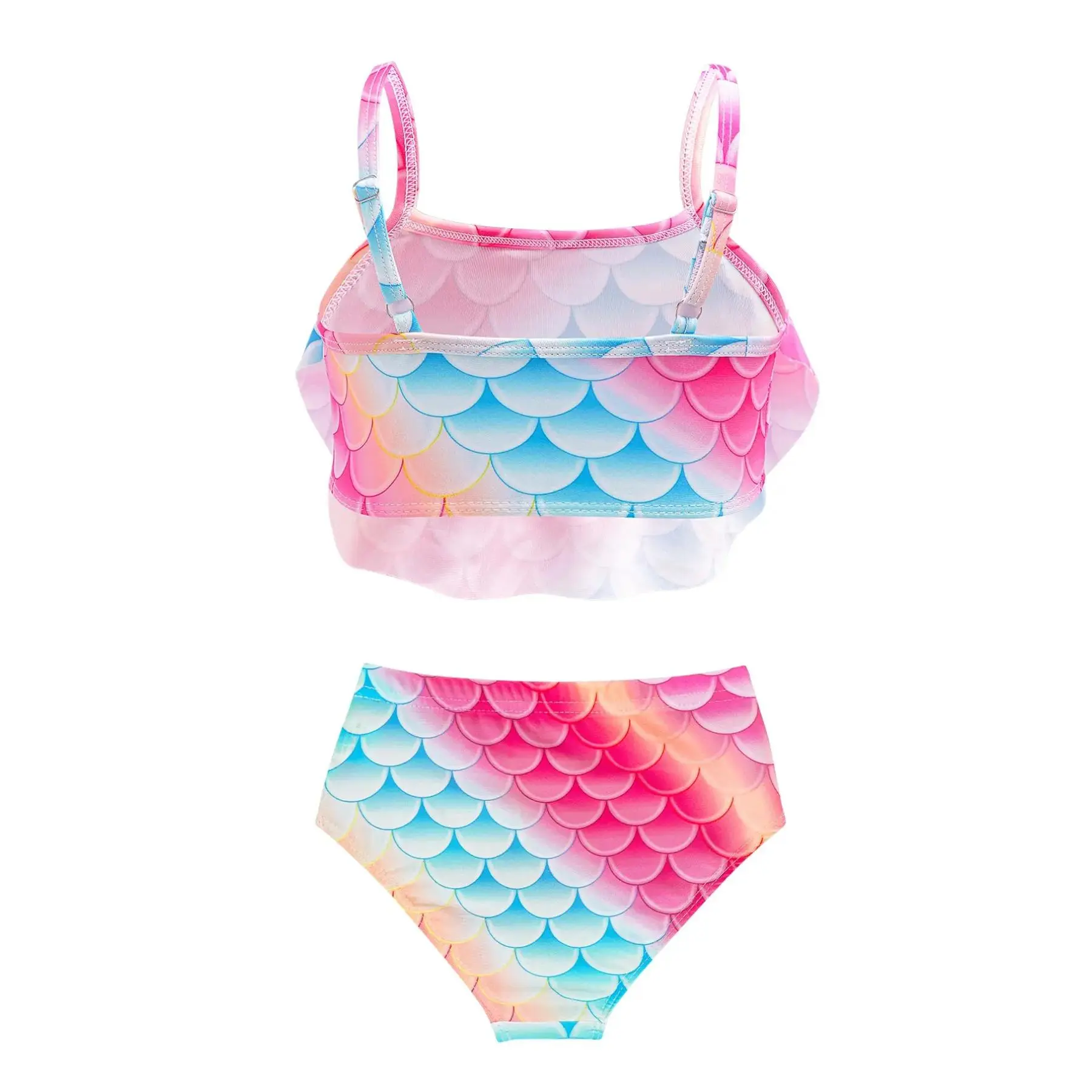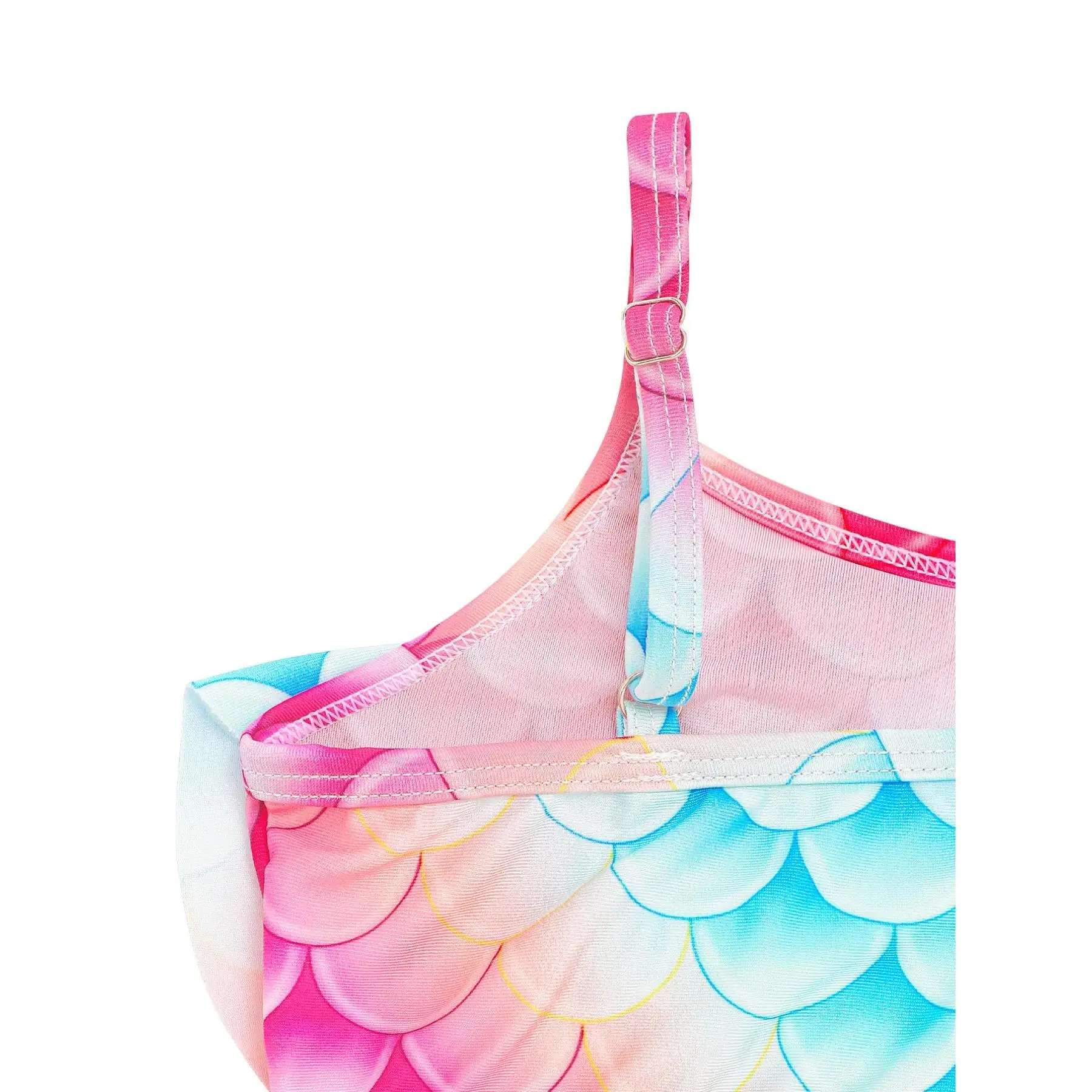[Colorful Pattern]: The vibrant fish scale print in rainbow colors makes this swimwear stand out, appealing to young fans of mermaids and aquatic themes.