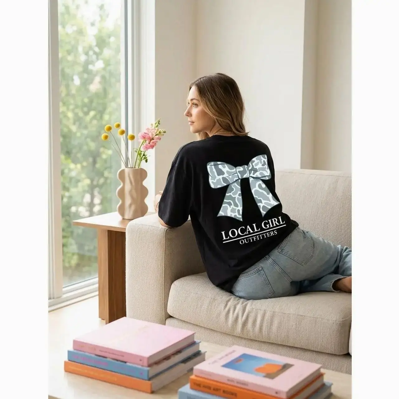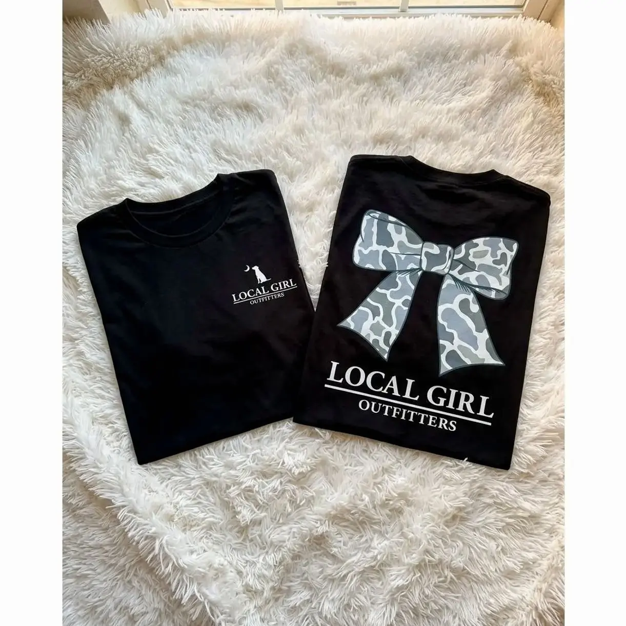 Local Girl Outfitters Camo Bow T-Shirt, Cute Oversized Southern Graphic Tee with Blue Camo Print, Trendy Country Girl For Fall, Rodeo, Or Hunting Seas Sweatshirt, Hoodie, Comfort Colors 8VD