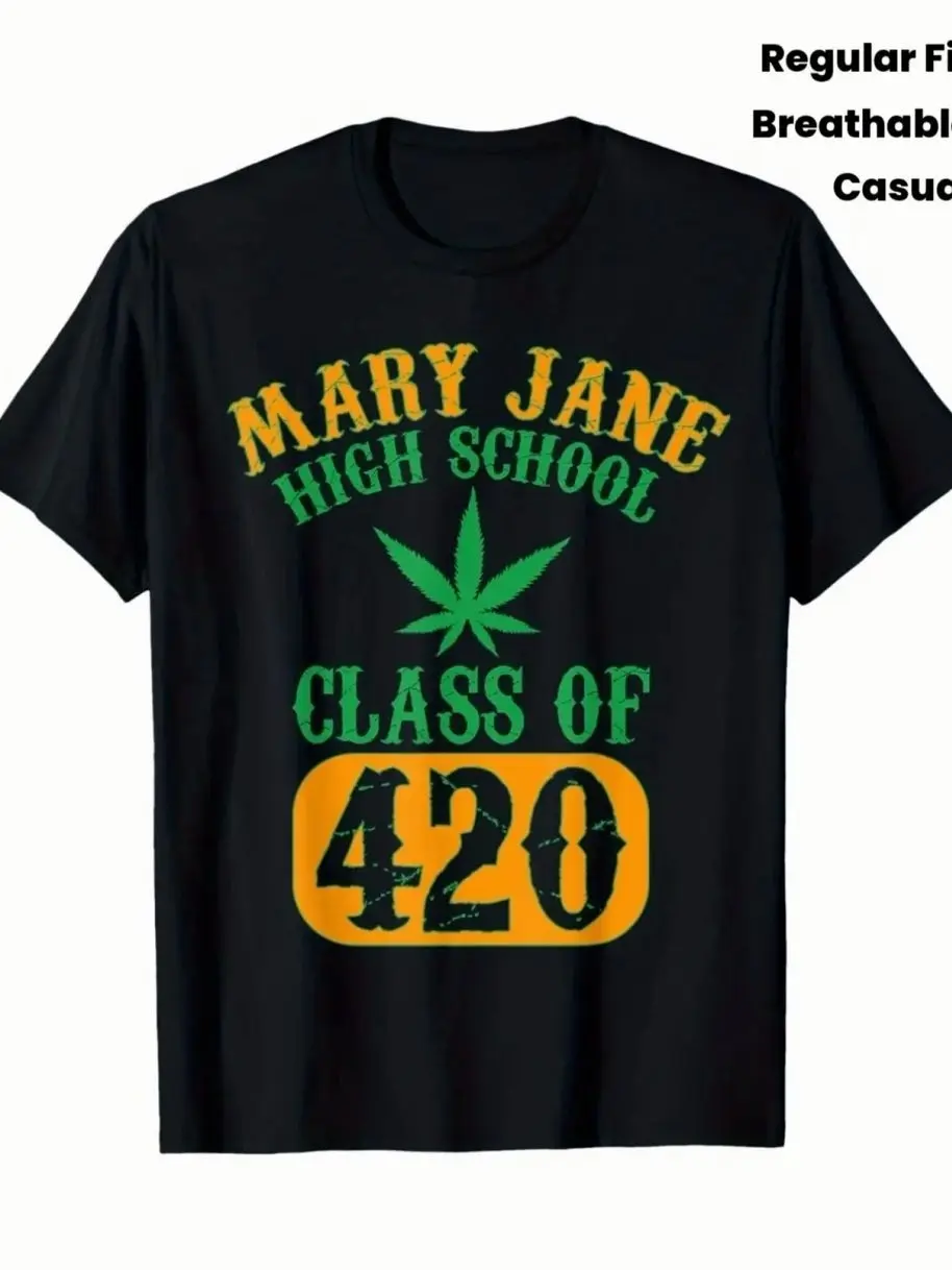 Men's Class of 420 Weed Graphic T-Shirt, 100% Fabric, Crew Neck, Short Sleeve, Regular Fit, Weekend Casual Wear, All-Season Casual Wear J3J