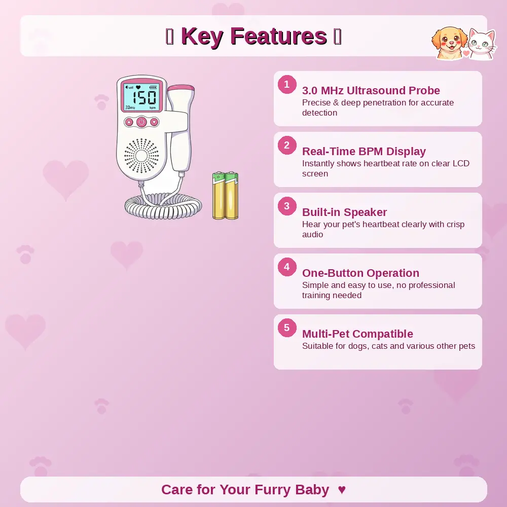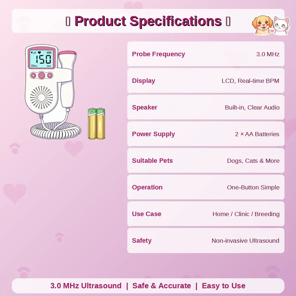 Pet Fetal Doppler Handheld Ultrasound Heartbeat Monitor for Pregnant Dogs and Cats Women