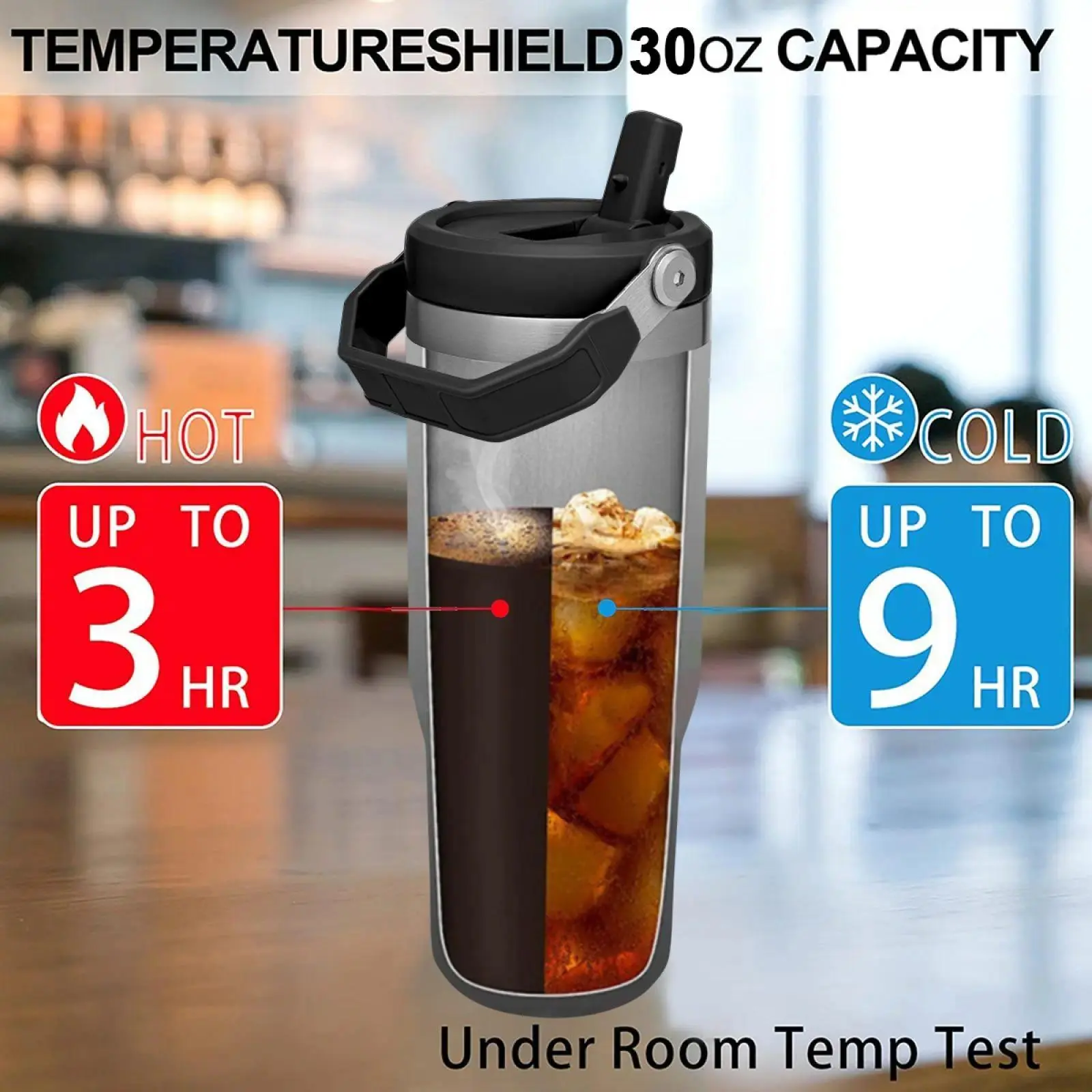 【Product Performance】The inner layer of the cup body is made of high-quality 304 stainless steel, which is environmentally friendly and odorless. The lid has a good seal, and it has both a direct drinking spout and a straw spout for convenient use. You can drink directly or use a straw. The cup has a certain heat retention effect and can keep drinks hot or cold for several hours. The bottom of the cup is made of natural stainless steel, so it is not afraid of scratches.
