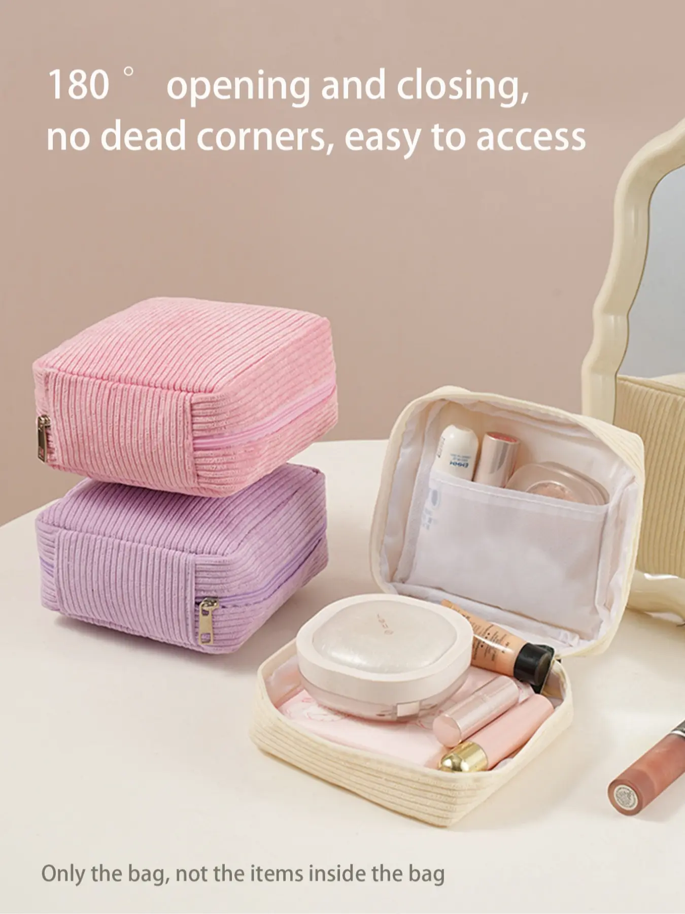 【Compact Size】: Small makeup travel pouch, perfect for organizing cosmetics without taking up much space in your bag.