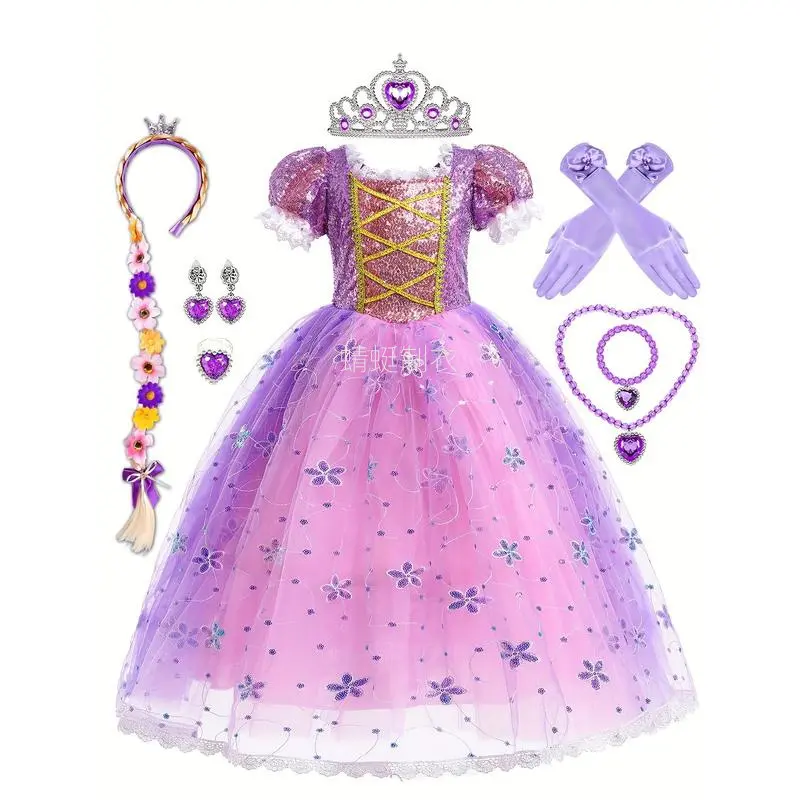 New[Purple Princess] Purple Princess Dress for Girls | Includes Crown, Necklace, Ring & Bag Set - Perfect for Birthdays, Halloween, Christmas Parties & Performances Gifts Gifts