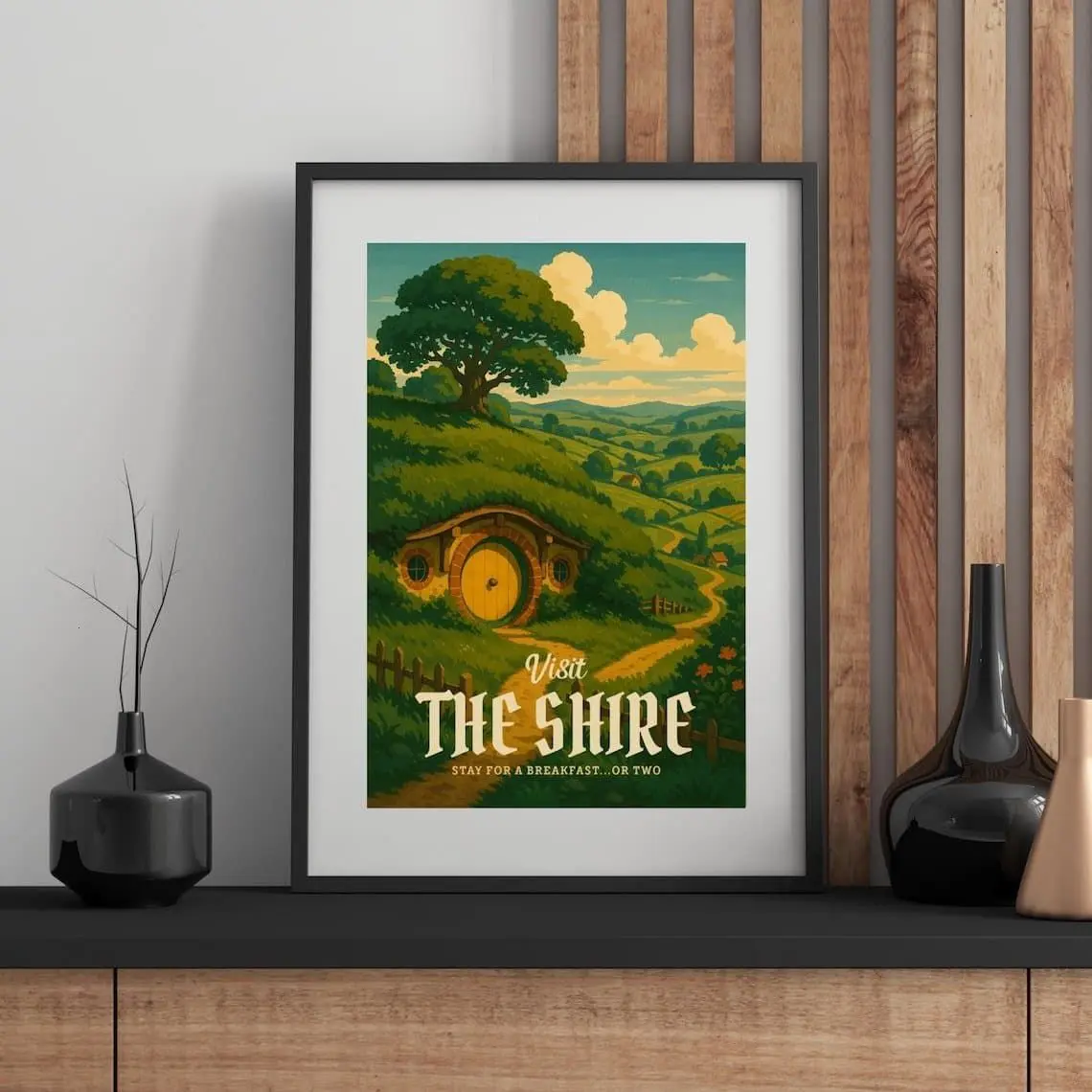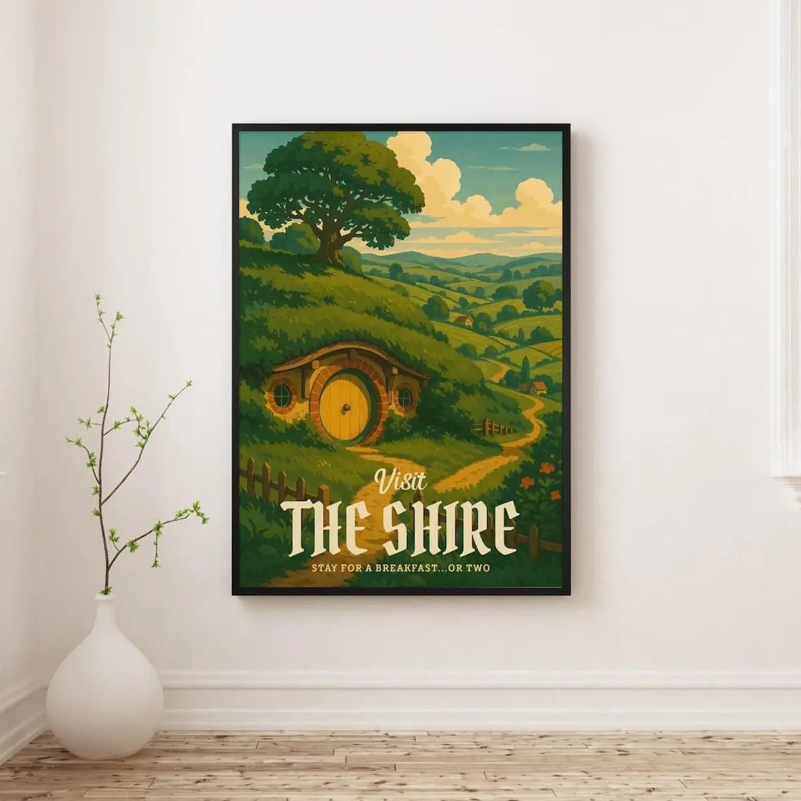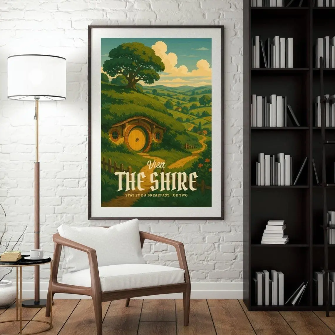 The Shire Travel Unframed Poster - Lord of the Rings Hobbiton Landscape Art Print - Retro Middle-earth Tourism Decor - Peaceful Fantasy Home Wall Art
