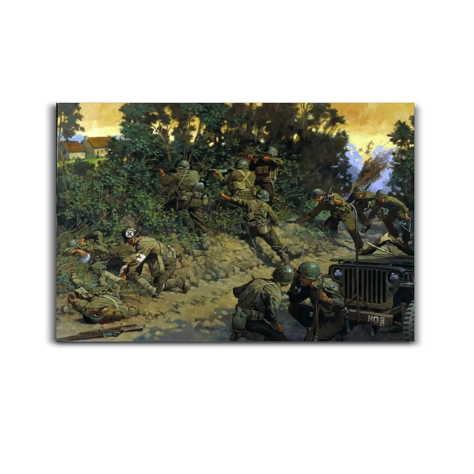 Vintage Poster WW II Soldier Battle Rifle Poster Decorative Painting Canvas Wall Art Picture Print Modern Family Bedroom Decor