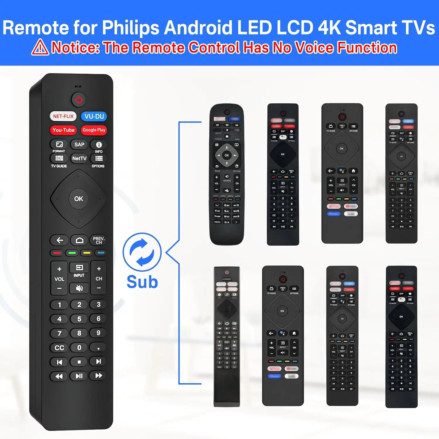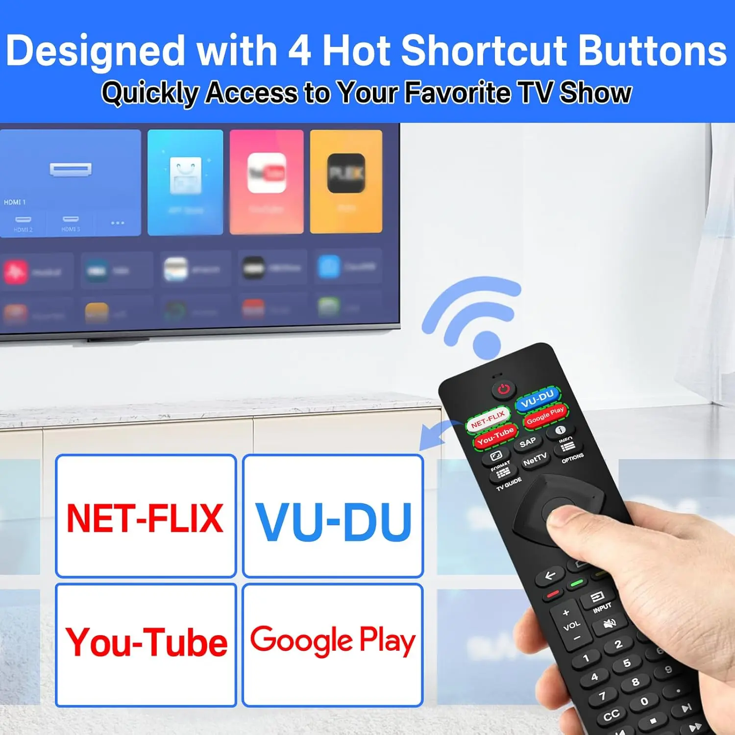 With 4 Shortcuts Buttons: The remote compatible with Philips Smart TV remote replacement features with Netflix, VUDU, Youtube, and Google Play shortcut buttons, which allows you to switch channels more smoothly and have a comfortable viewing experience!