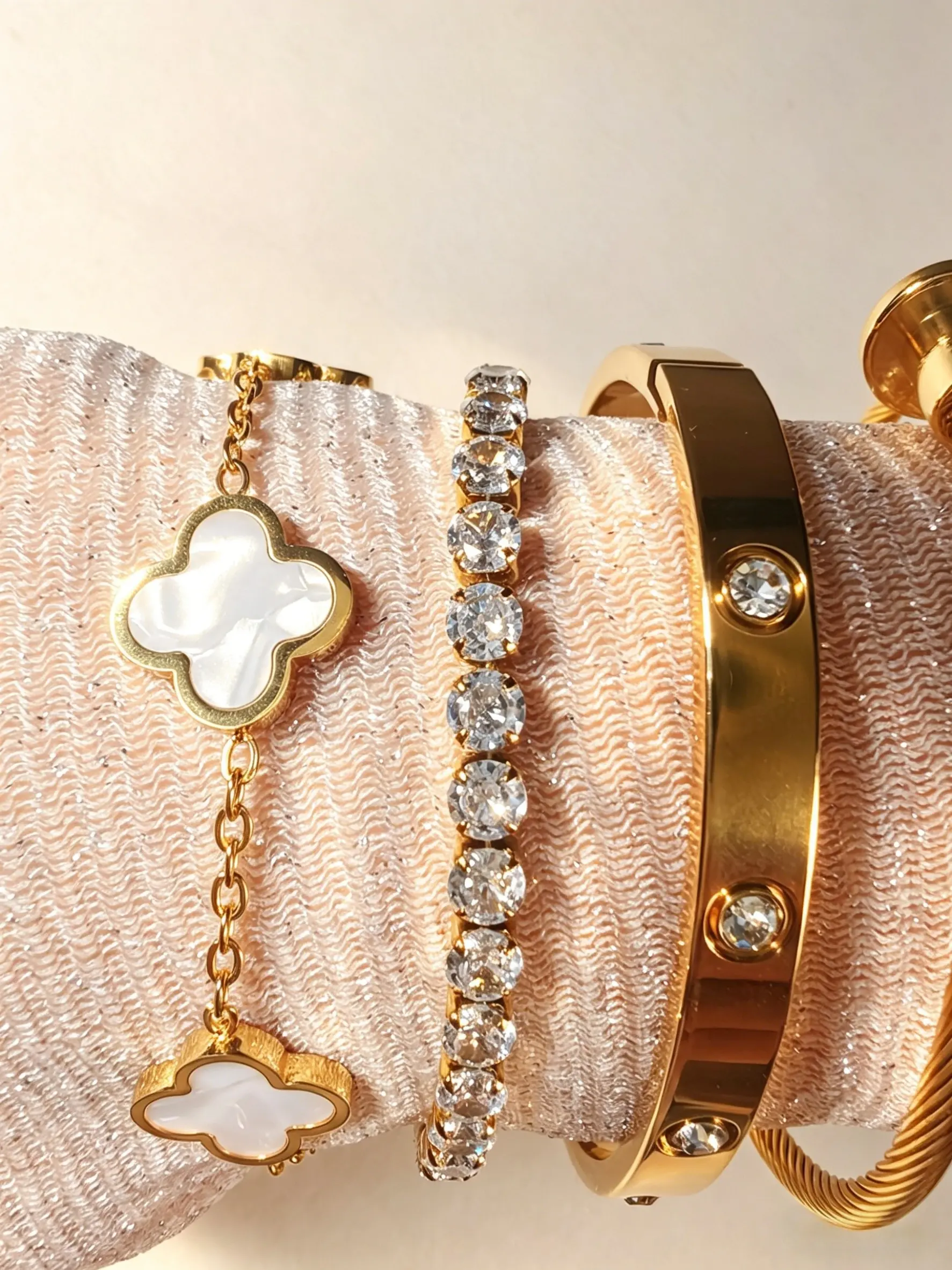5 Piece French Luxury Bracelet Set, Stackable Rhinestone Clover Heart Nail Bracelets, Perfect for Dates and Career Wear