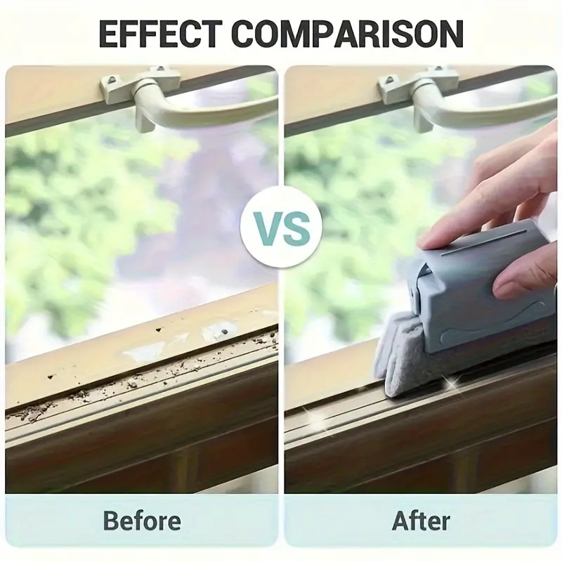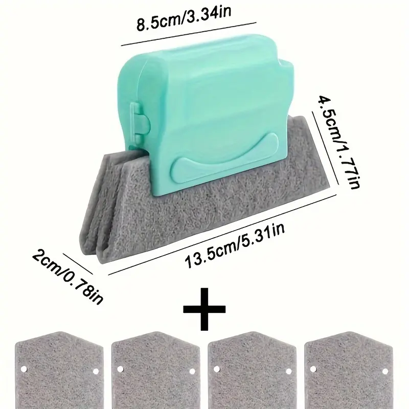 [Reusable Sponge Pads] 5pcs Multi-Component Window Cleaning Kit with Plastic Handle - Includes 1 Sill Brush and 4 Reusable Sponge Pads, Suitable for Indoor and Outdoor Use, Ideal for Living Room, Bedroom, Bathroom, and Kitchen | Essential Indoor Cleaning