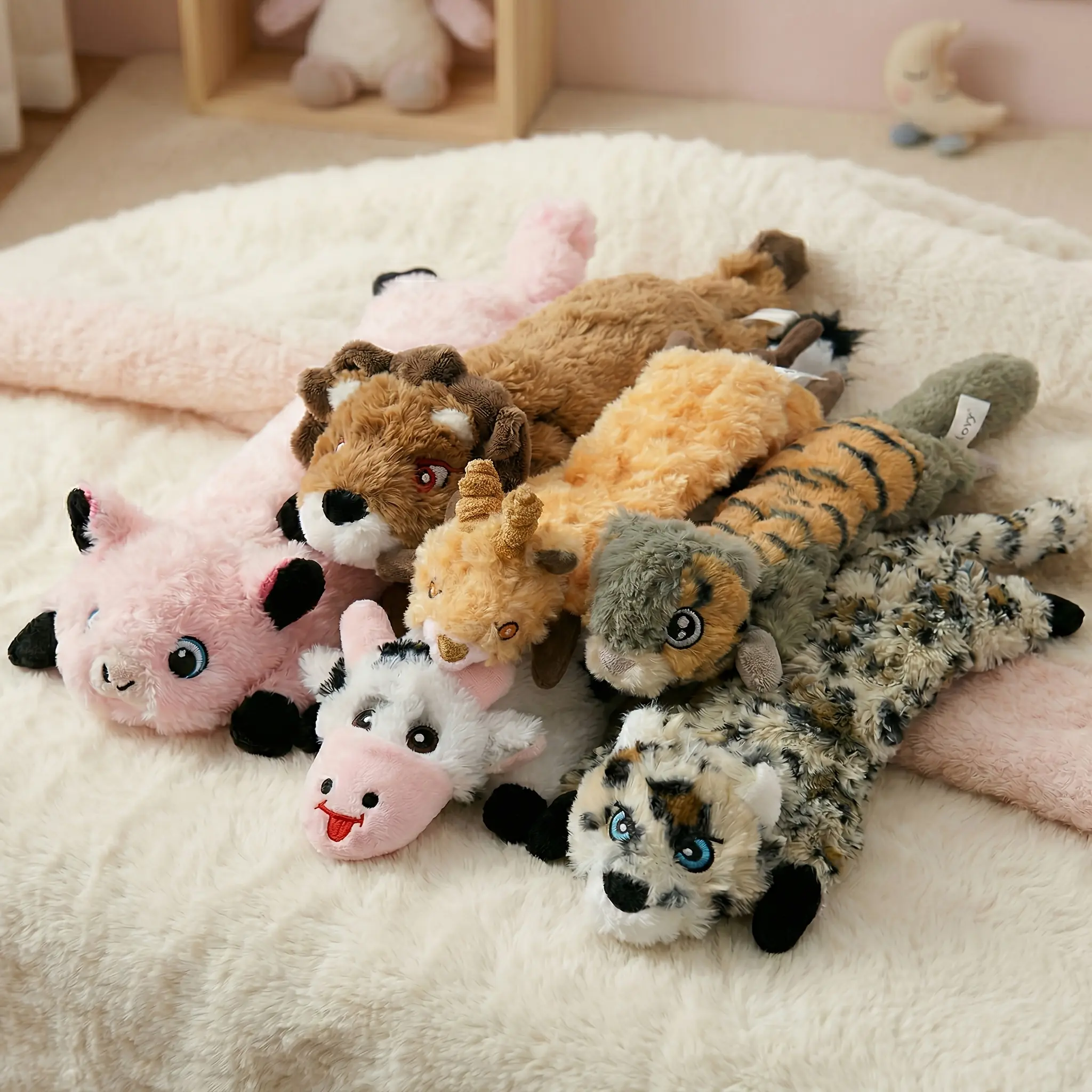 Dog Squeaky Toys No Stuffing 1/3/6 Pack Dog Toys Crinkle Dog Toys For Small Dogs Durable Dog Chew Toys Plush Cute Animals Natural Puppy Toys For Teething Pet Toys Squeak, Without Battery