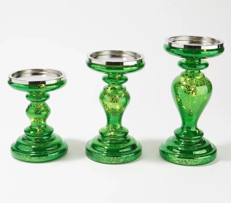 Set of 3 Illuminated Mercury Glass Pedestals by Valerie