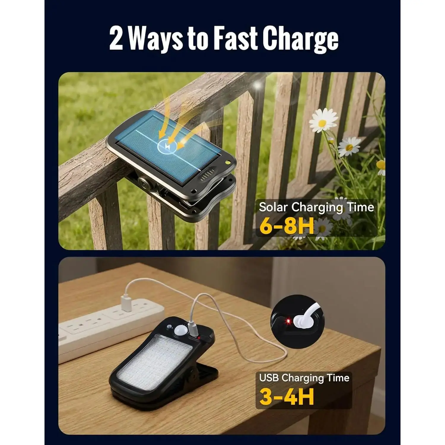 Ultra-Bright Solar Light,Compact Portable Clip-On Motion Sensor, Multi-Function Outdoor LED Safety Lighting, Pathway Security Lights, Suitable for Courtyard, Garden, Balcony, Patio, Fence, Deck, Wall, Garage, Workshop Repair
