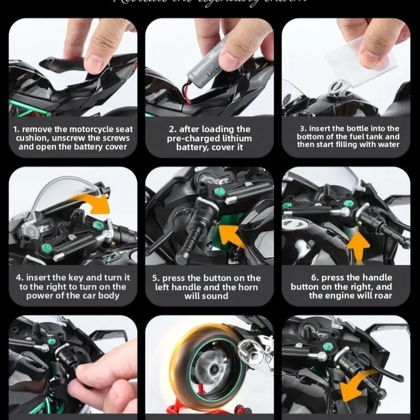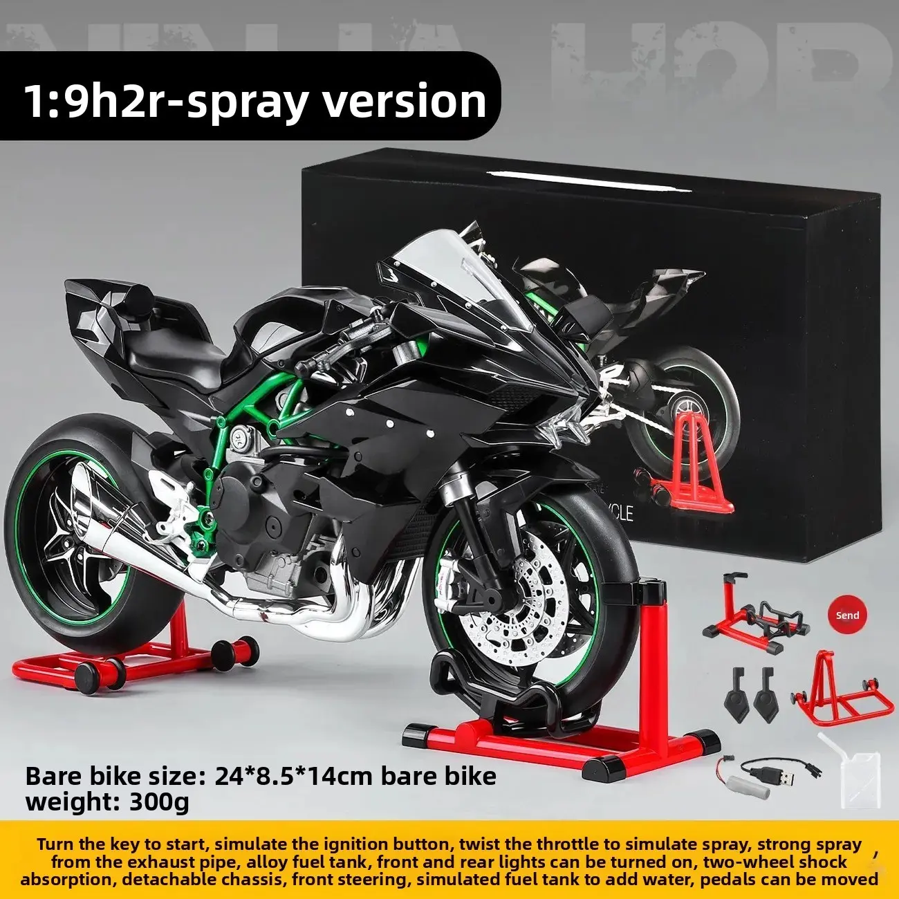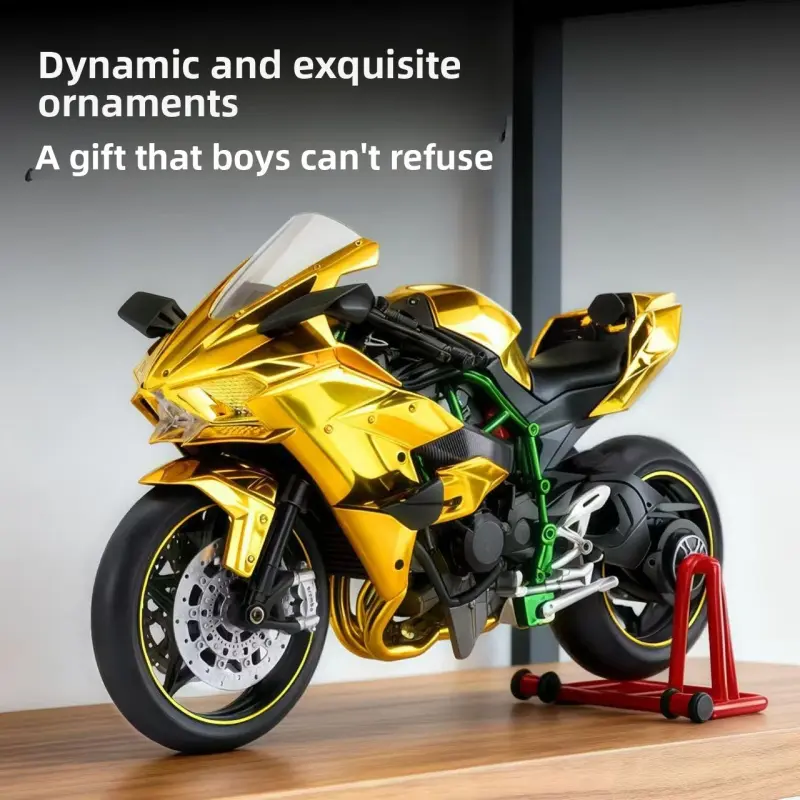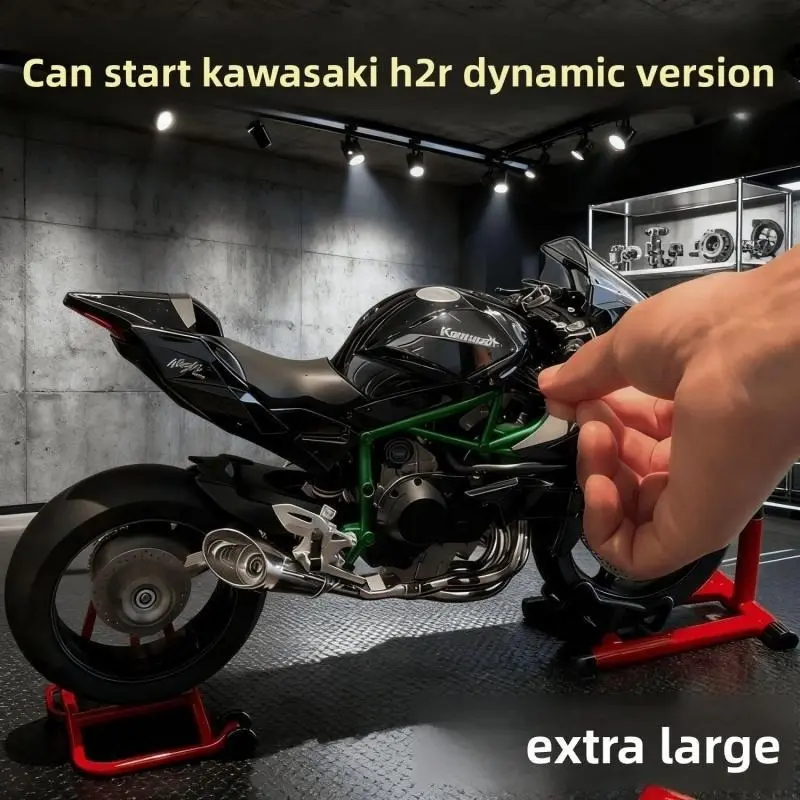 Kawasaki H2R Dynamic Edition 1/9 oversized realistic motorcycle model, highly detailed with precise reproduction of features, supports ignition start, authentic engine sound effect, has a strong metallic texture, essential for collector-level motorcycle e