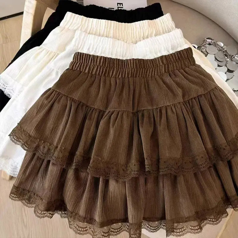 Solid Color Double Layer Vintage French Ruffled A-Line Pleated Skirt