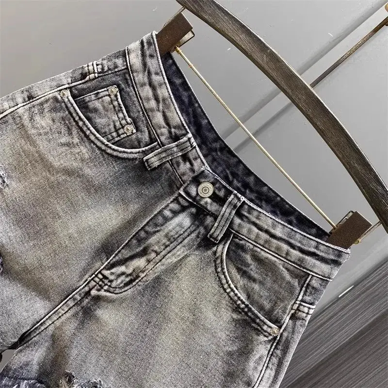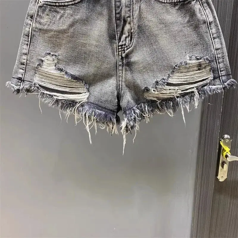 Frayed Vintage Washed Denim Shorts