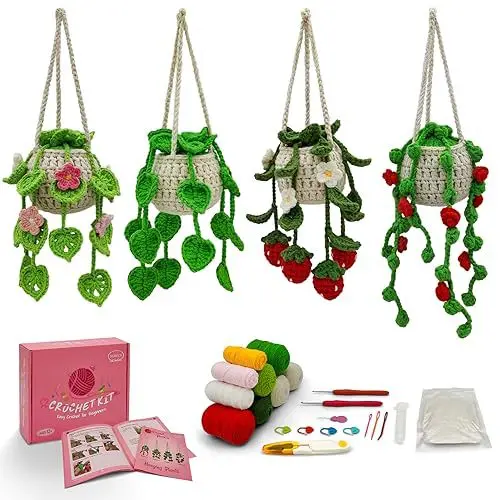 Handmade Crocheted Plant Car Pendant, Cute Knitted Hanging Basket Flower Doll, Rearview Mirror Hanging Ornament, Boho Car Interior Decor Accessories for Women
