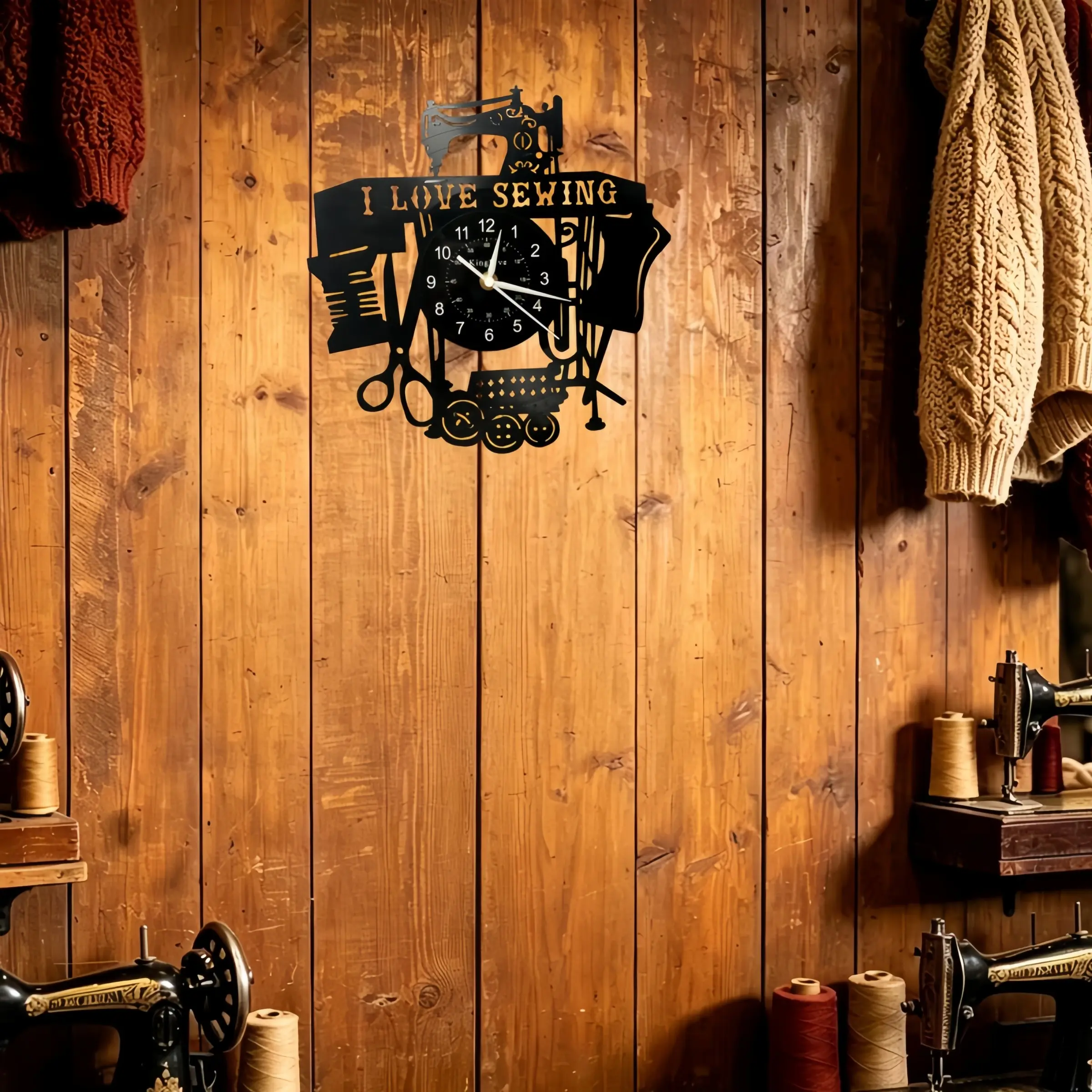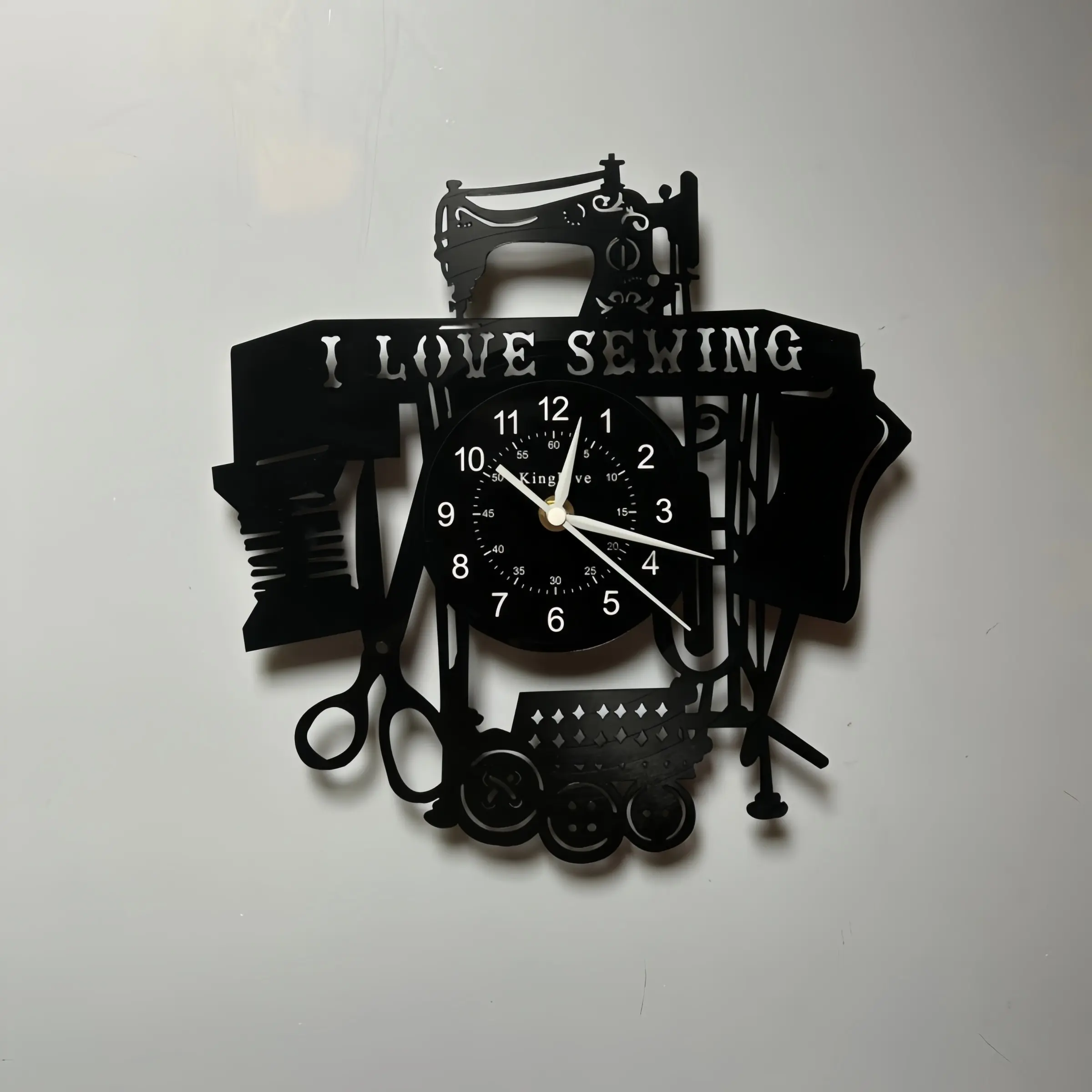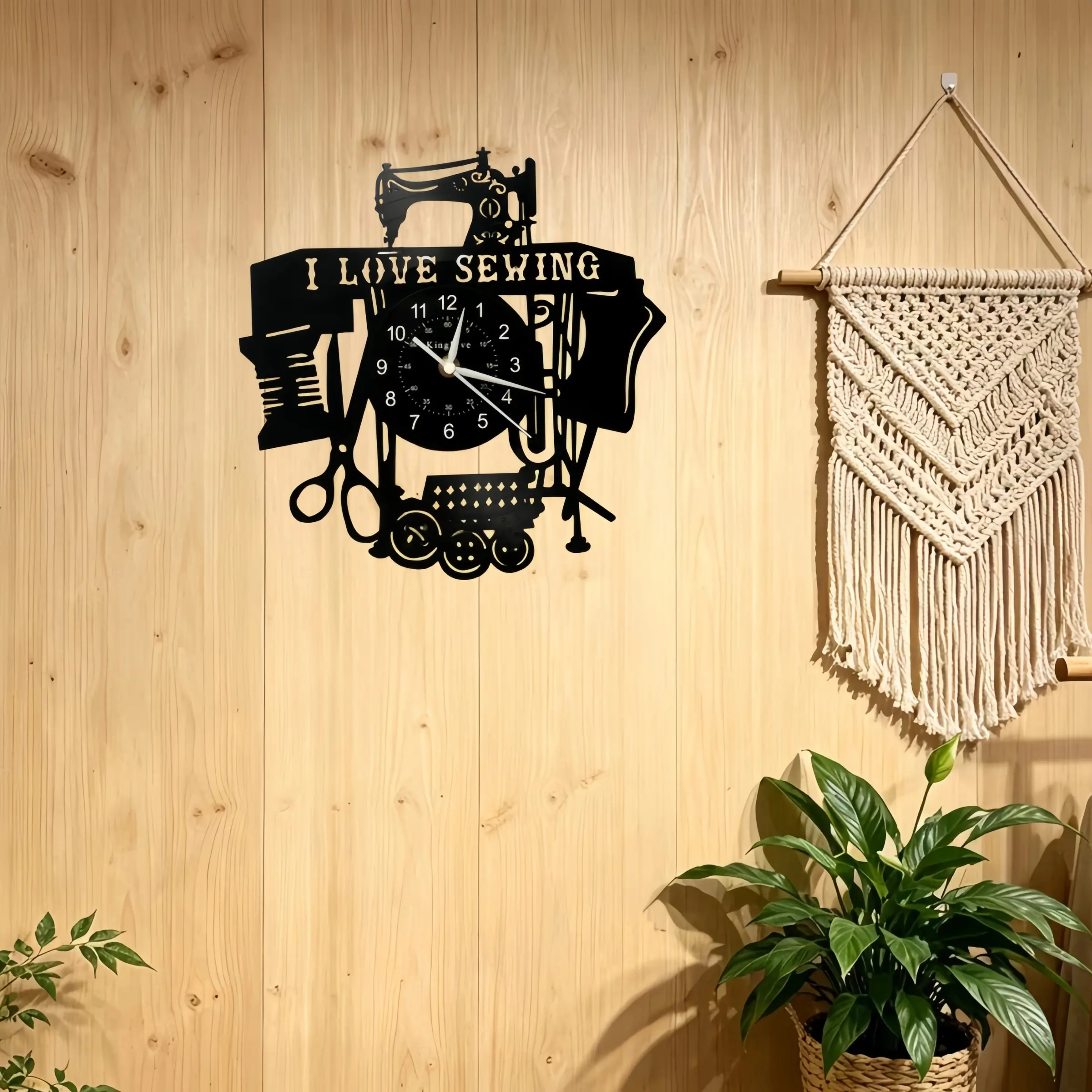 Exclusive Sewing Enthusiast Vinyl Wall Clock, Bold I Love Sewing Slogan, Perfect for Sewing Studio, Tailor Shop, Craft Room, Clothing Store