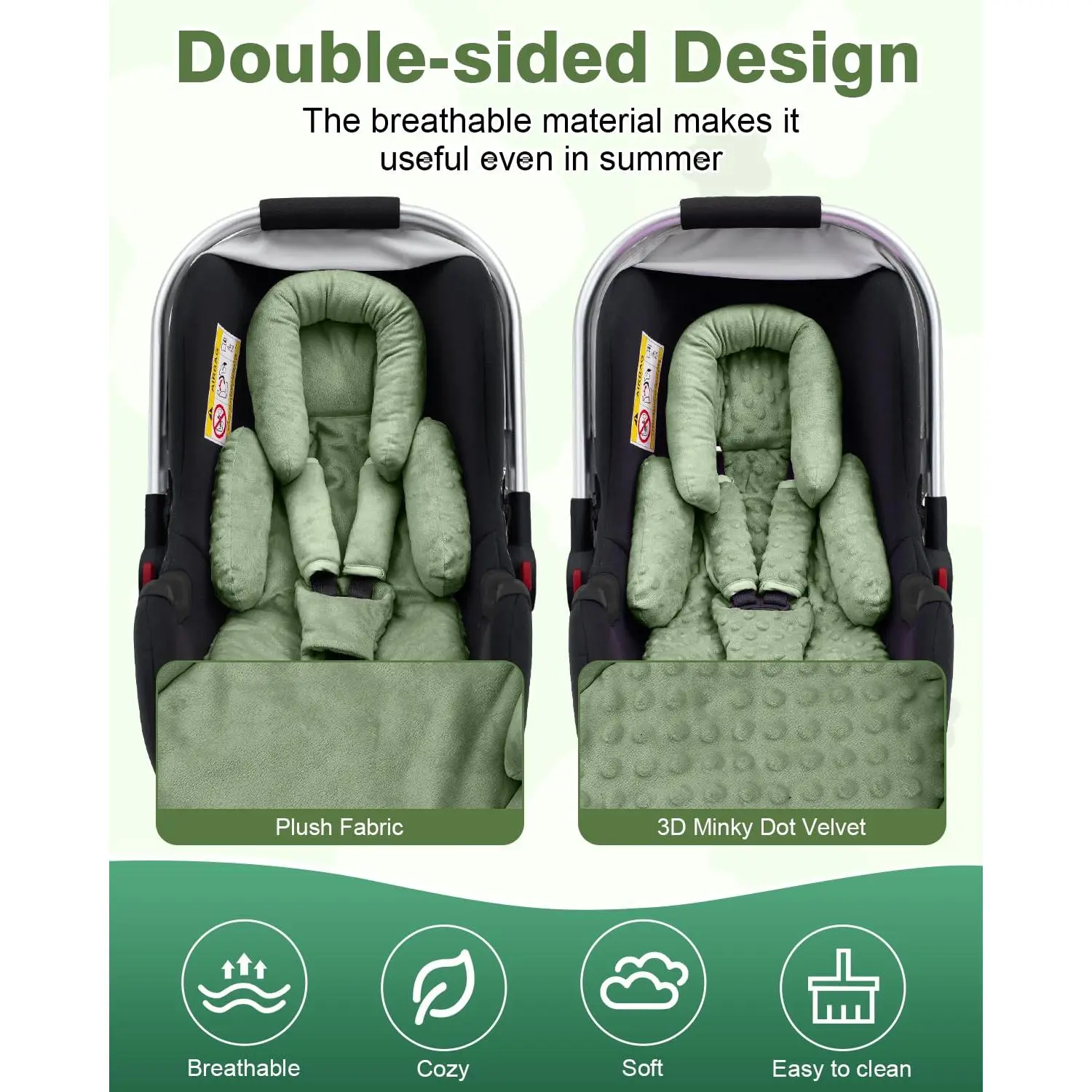 Infant Car Seat Head Support with Extra Shoulder Covers Thickened Breathable Carseat Cushion for Baby Newborn Stroller Swing Insert